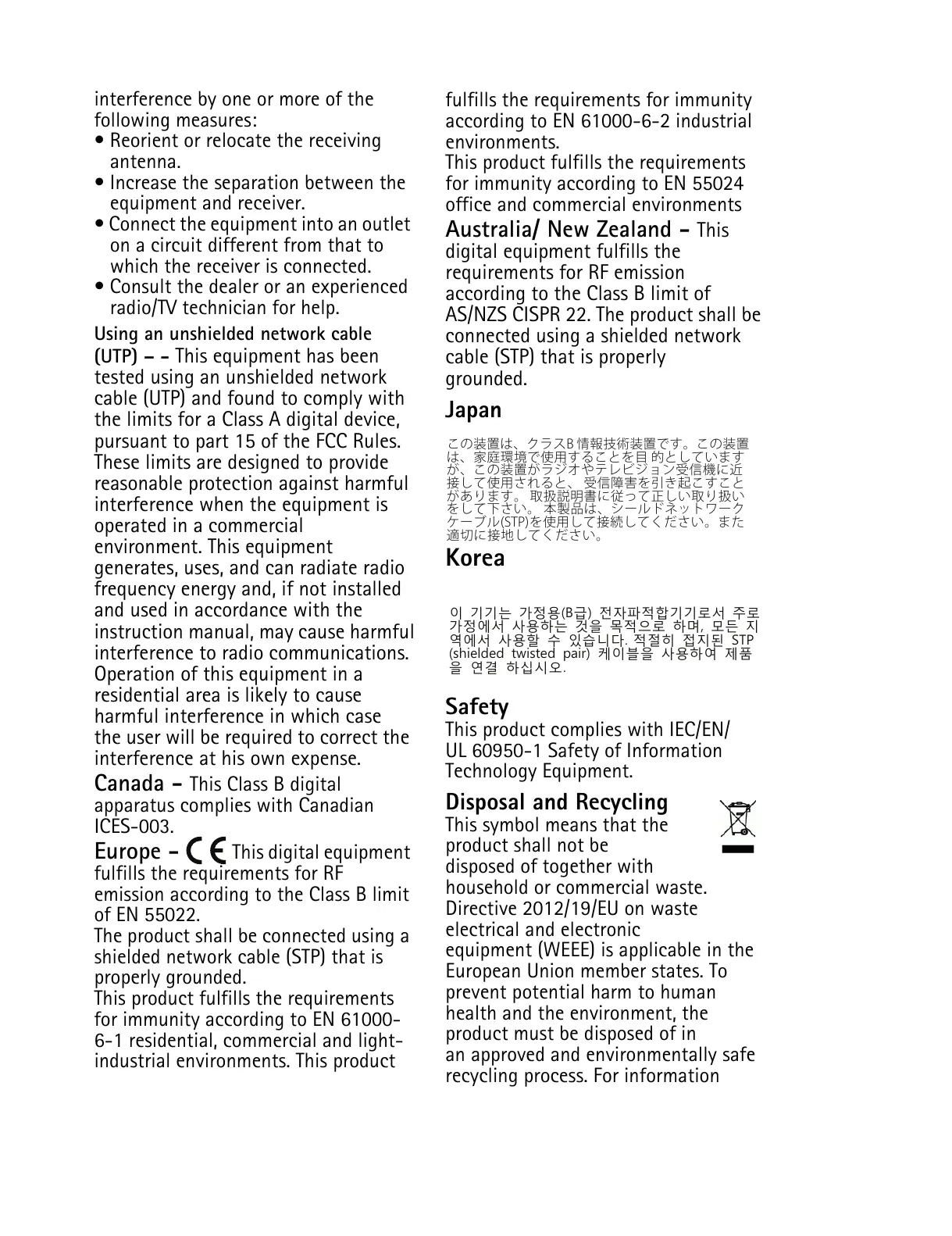 AS/NZS CISPR 22. The product shall be
