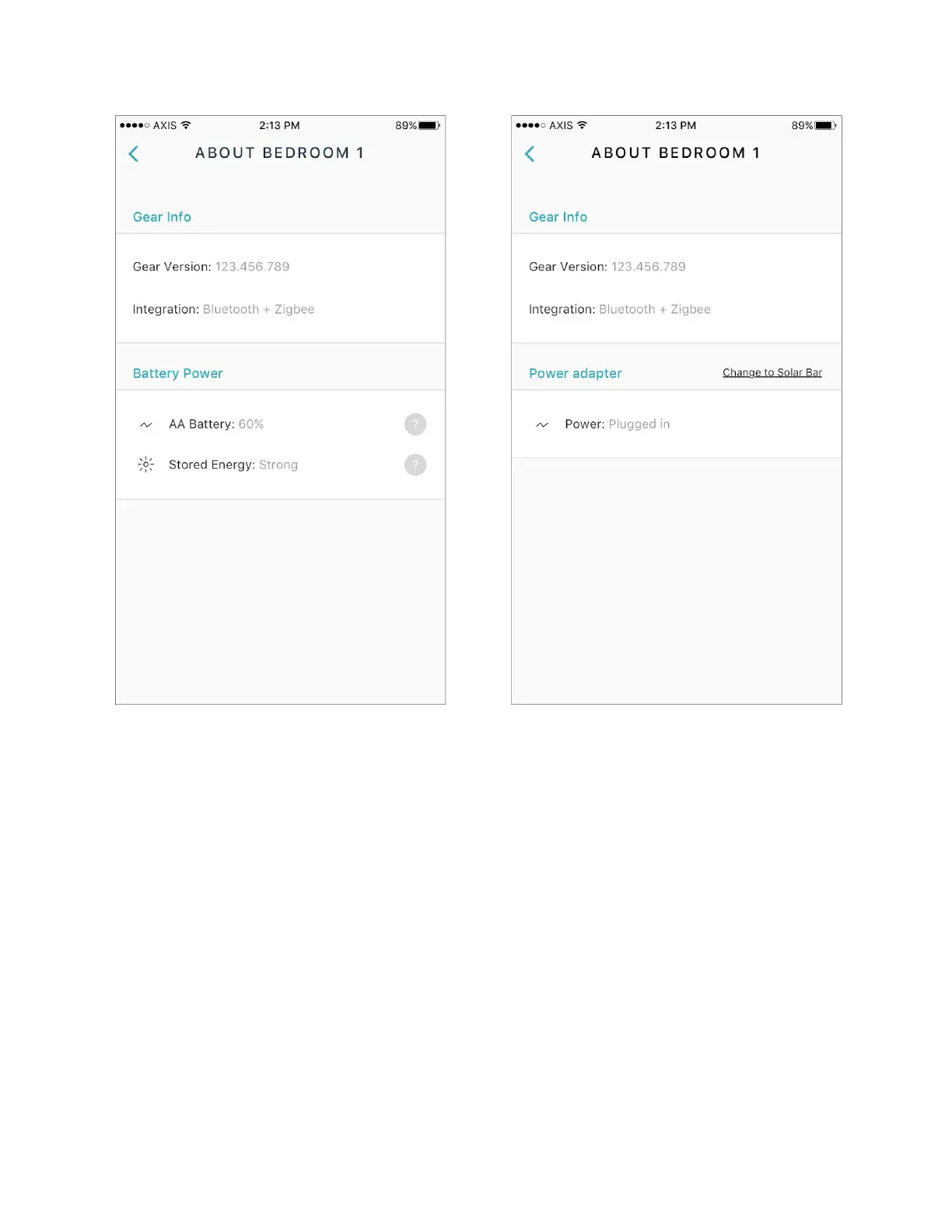 Figure 1 Solar Bar readout (left), Power Adapter readout (right)