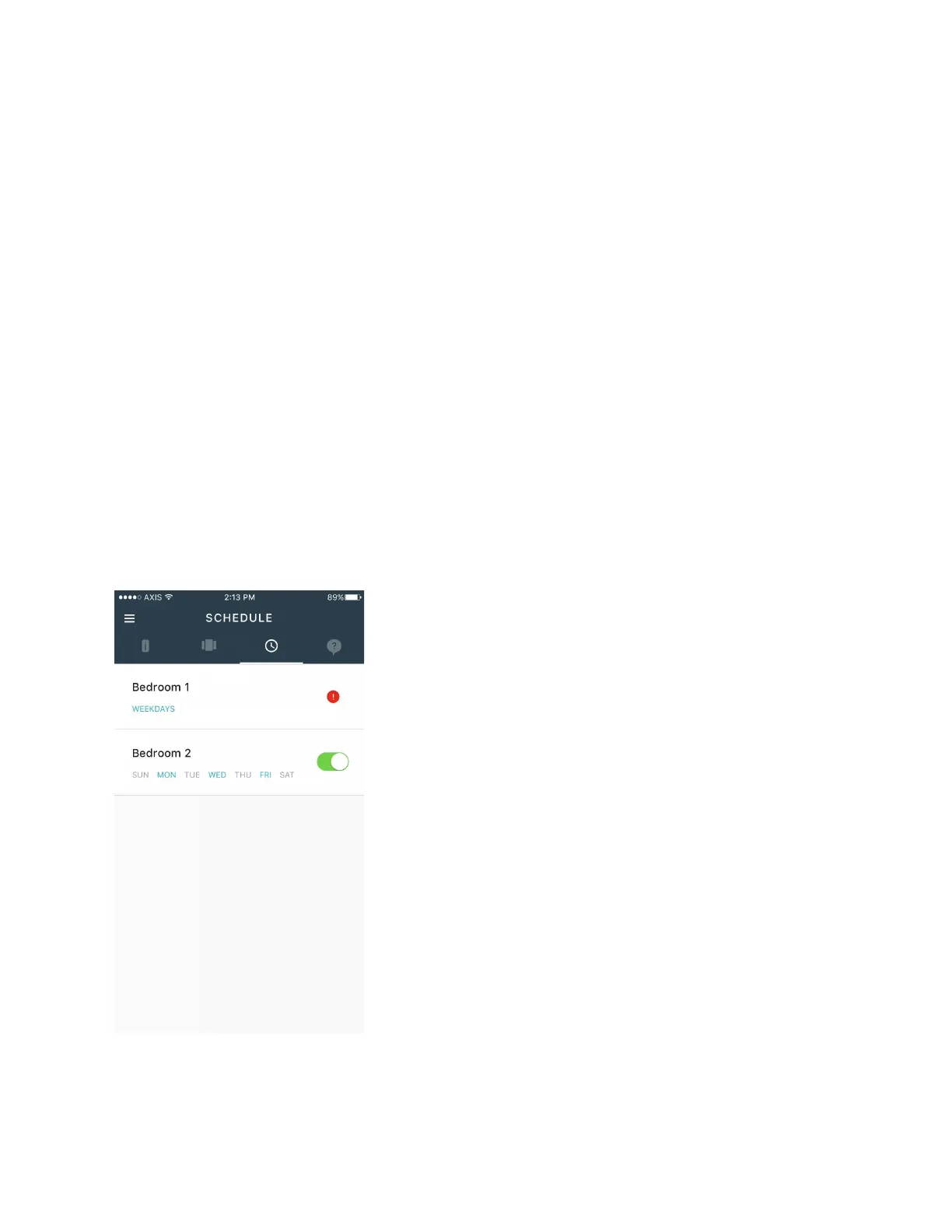 If there is an error in sending a schedule, the mobile app shows a red exclamation mark beside
