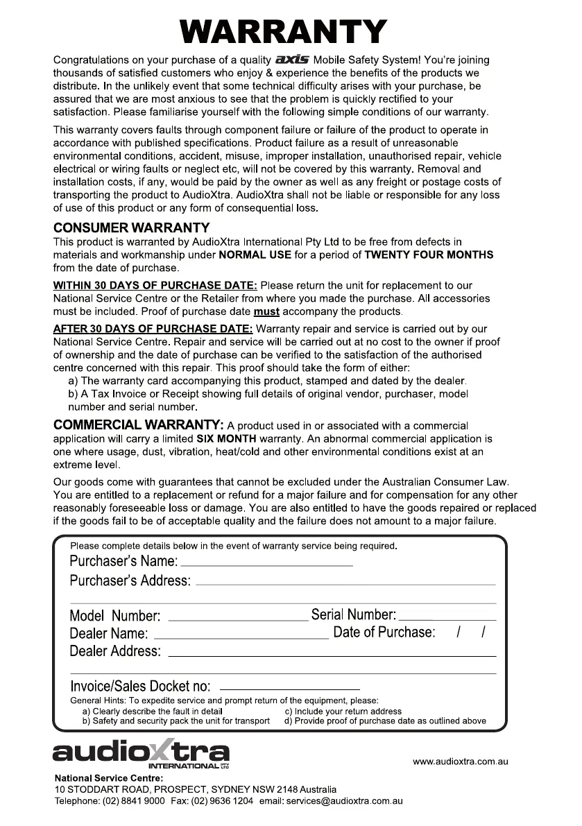 Axis JS7001K - Product Warranty Information