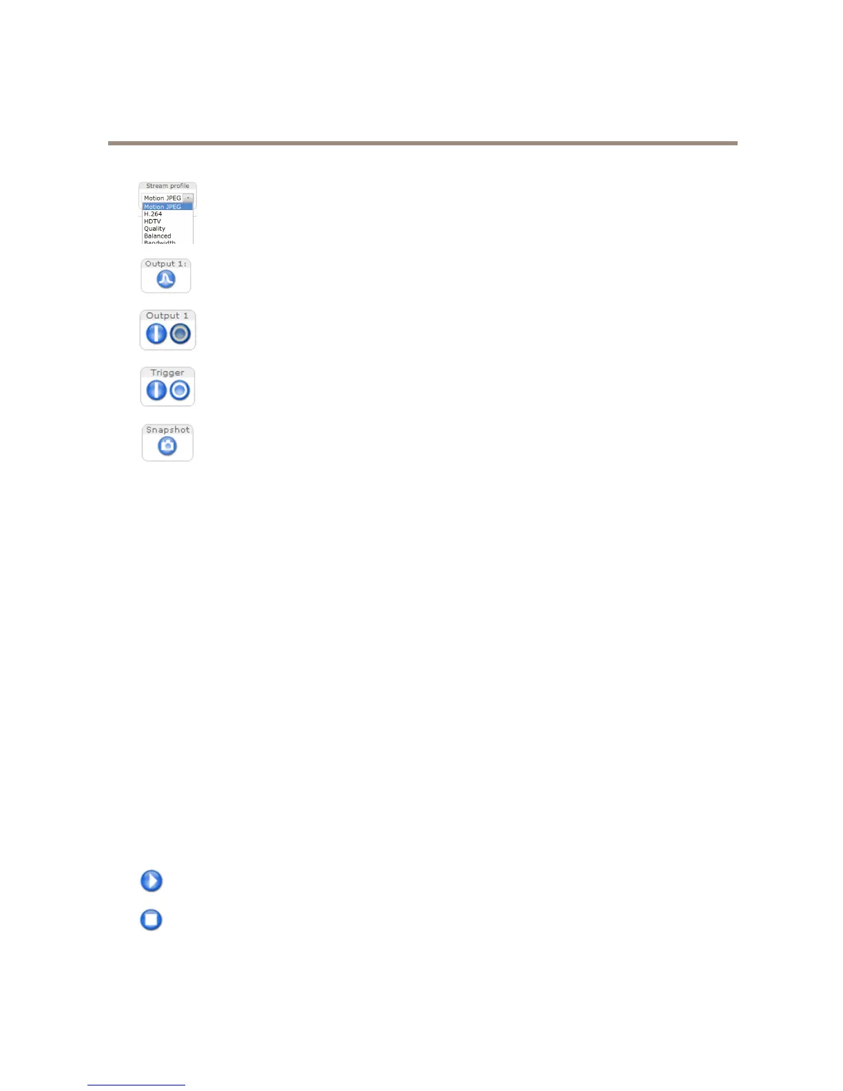ThePlaybuttonconnectstotheAxisproductandstartsplayingamediastream.