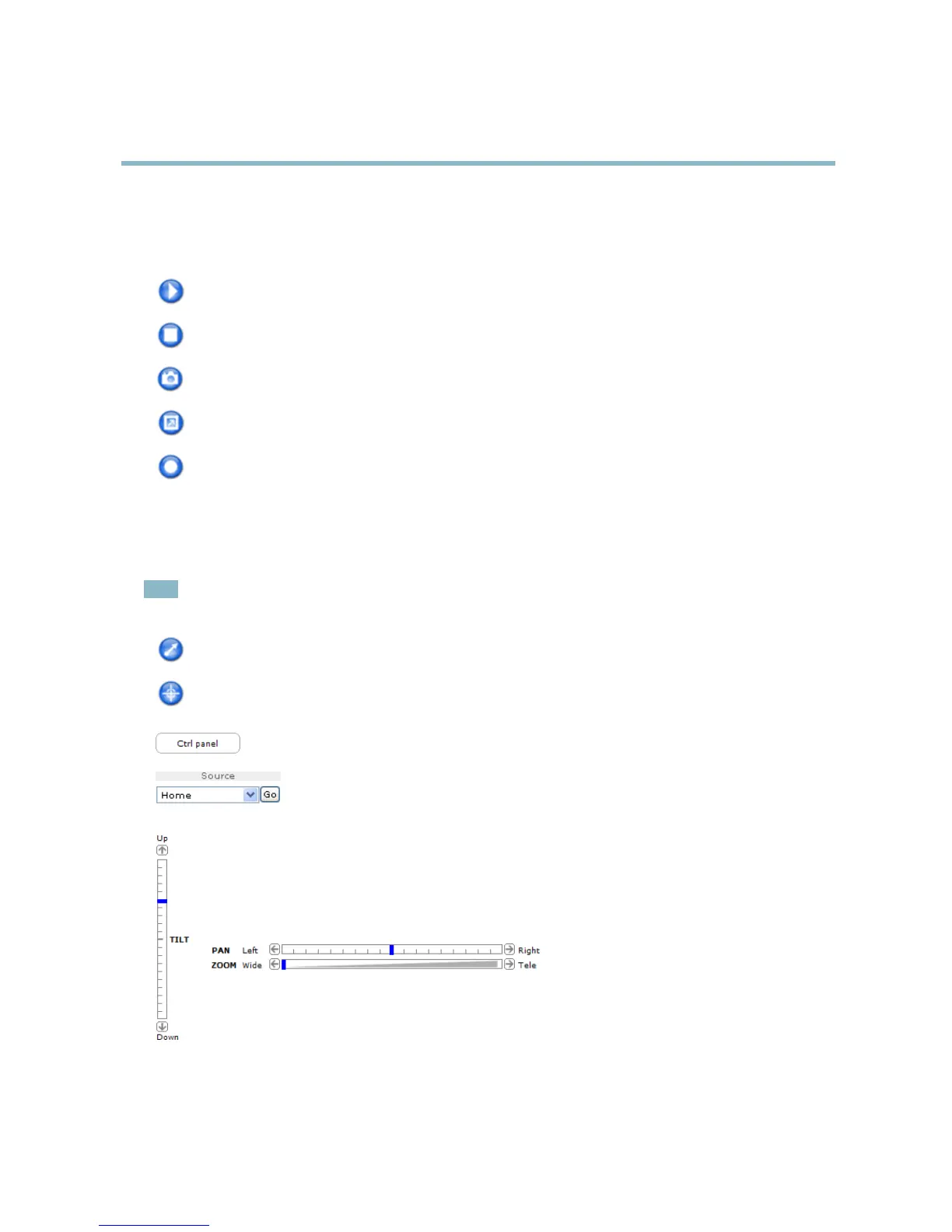 Pan and Tilt bars – Use the arrows to pan and tilt the camera view, or click on a position o n the bar to ste er the