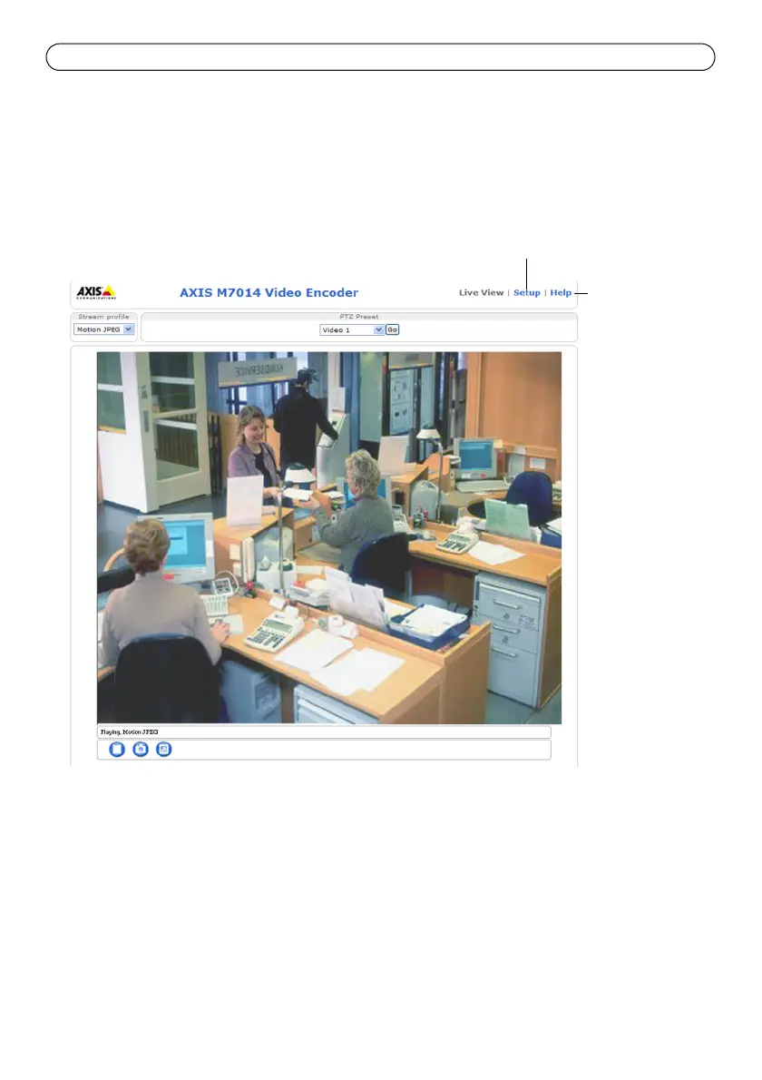 7. Aparece la página Live View (En vivo) del dispositivo AXIS M7014/M7010. El vínculo Setup