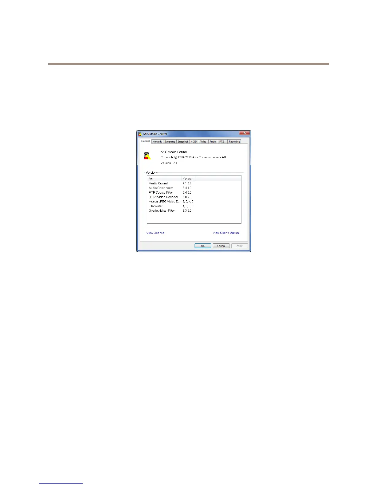 TheAMCControlPanelcanbeusedtocongurevariousvideosettings.PleaseseetheAXISMediaControlUser’sManualformore