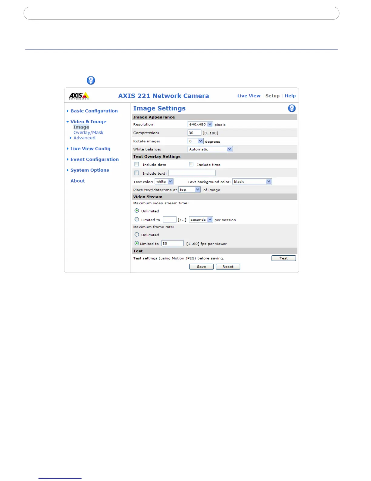 AXIS 221. For details of each setting, please refer to the online help available from the