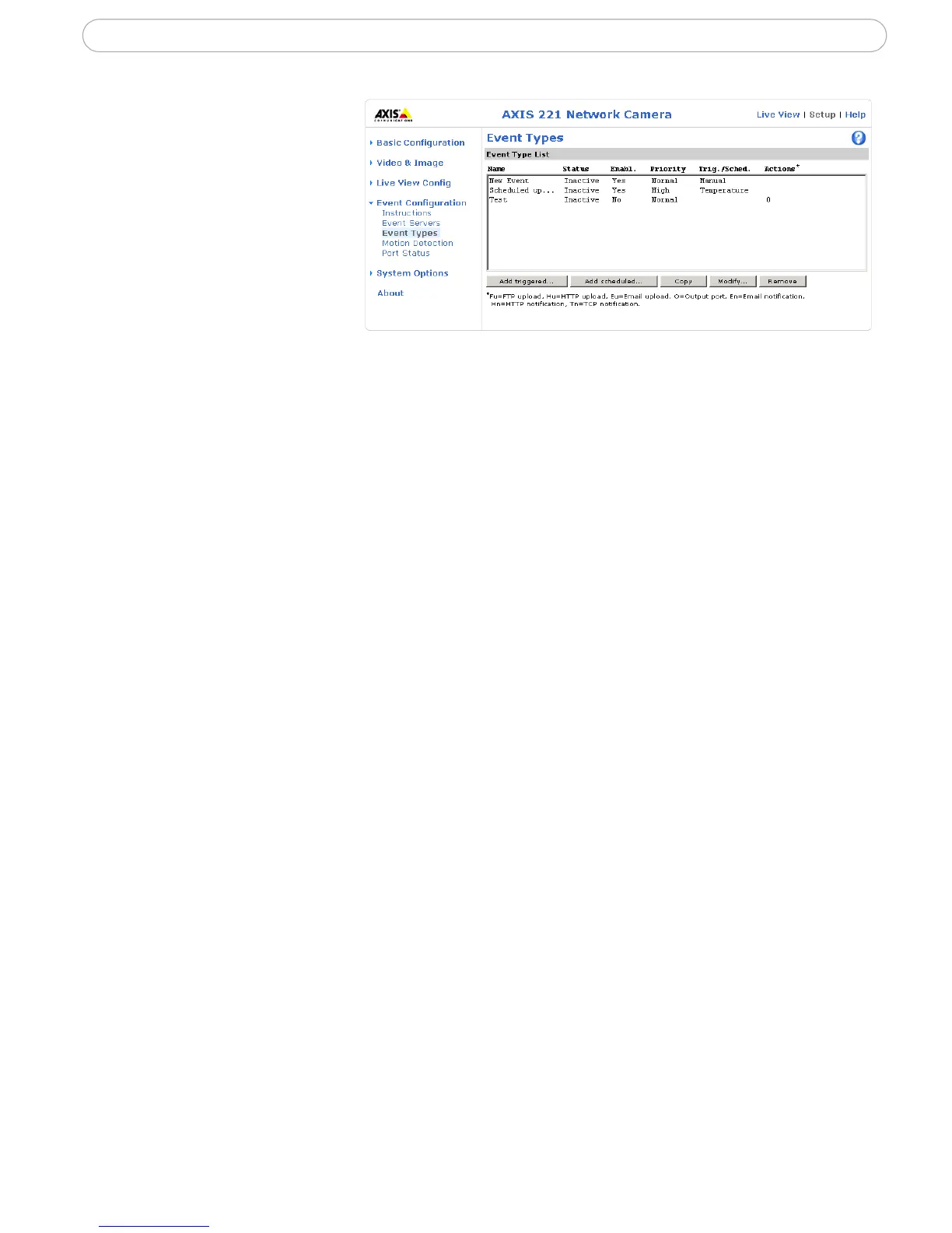 7. Set the When Triggered... parameters, i.e. define what the camera will do if the