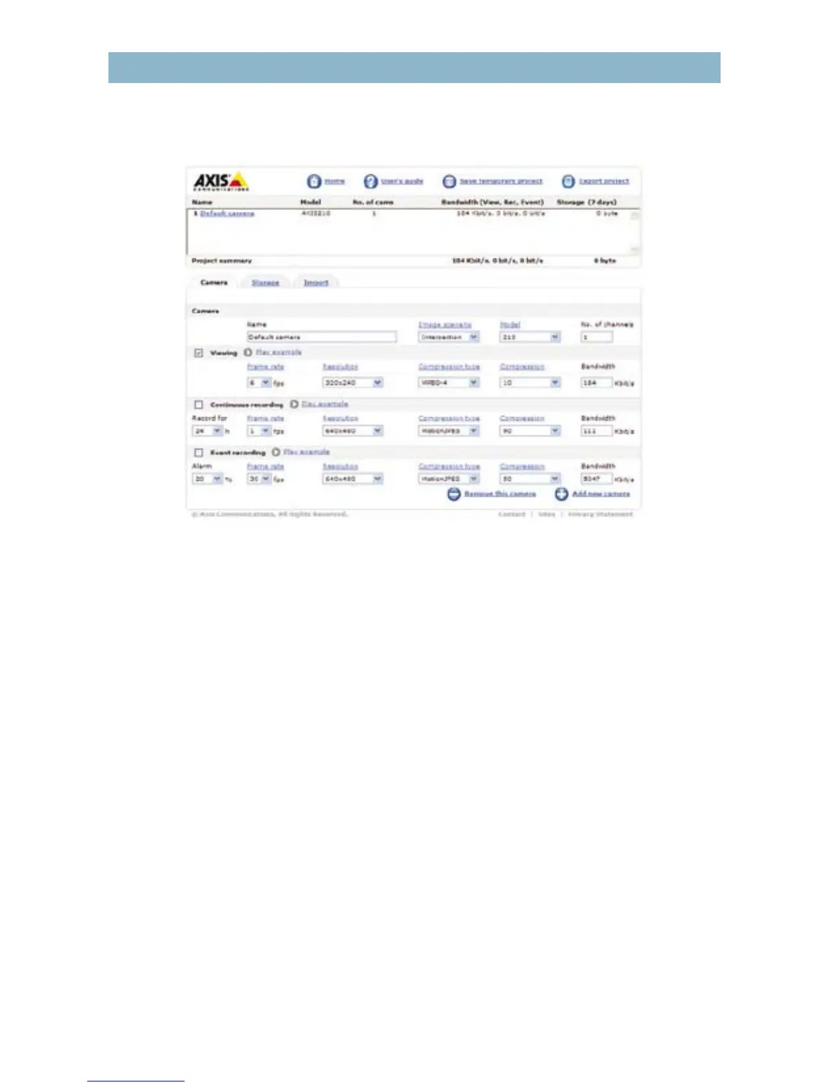 A helpful tool in estimating requirements for bandwidth and storage is the AXIS Design Tool, which