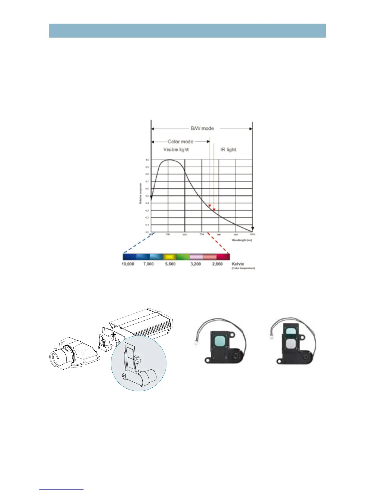 Figure 2.3b Image at left, IR-cut lter in a day/night network camera; middle, position of IR-cut lter during day-