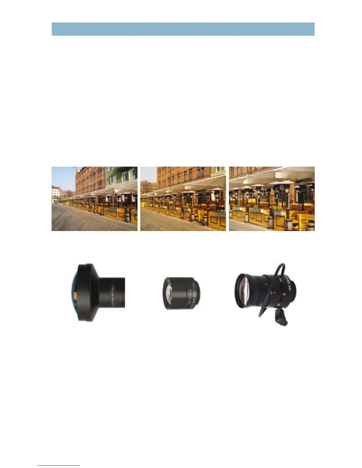 Figure 3.2b Network camera lenses with dierent focal lengths: wide-angle (at left); normal (middle); telephoto (at