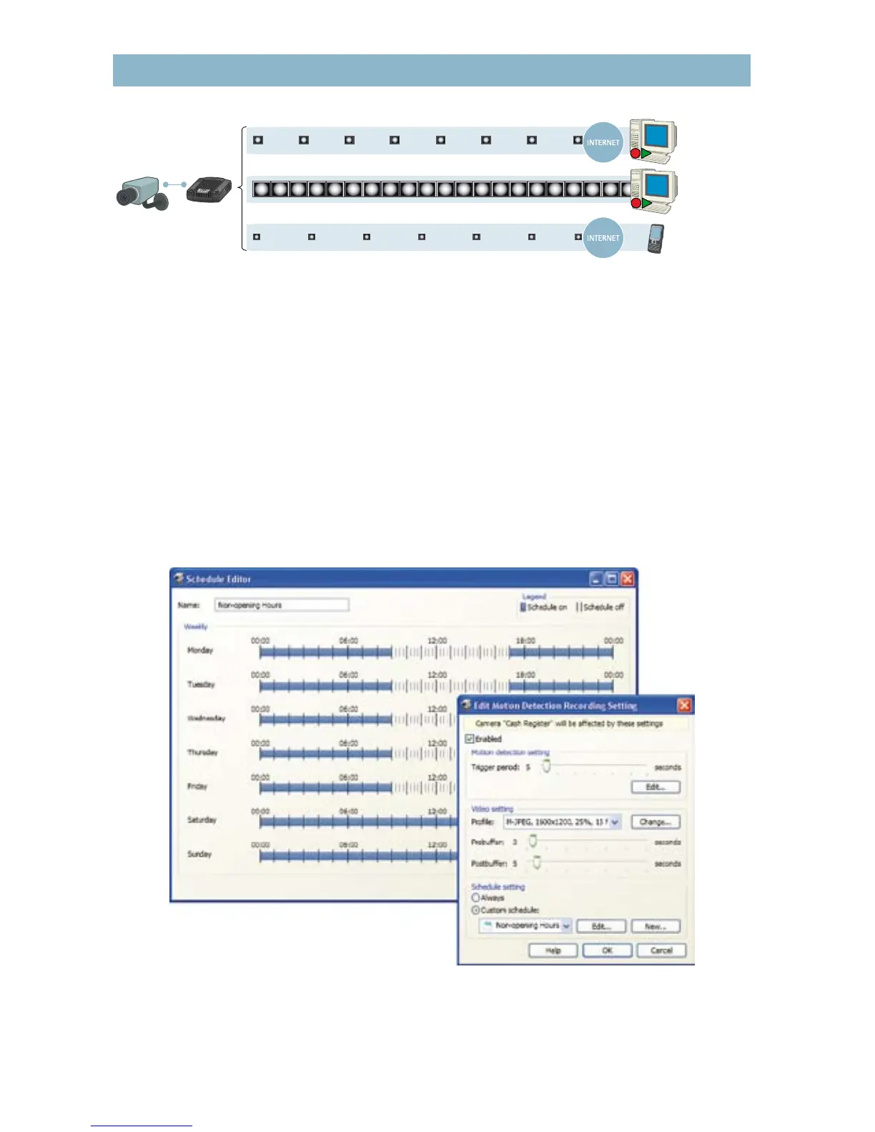 timetables for both continuous and alarm/motion-triggered recordings can be set.