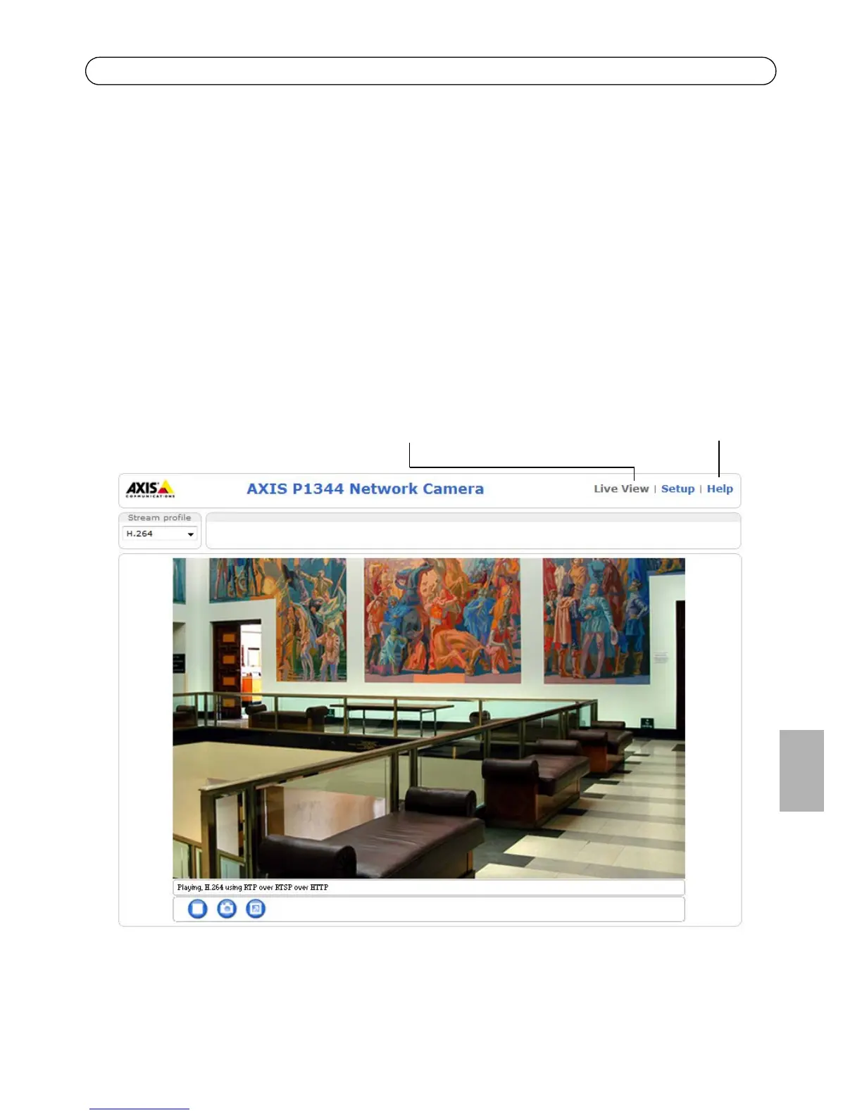 La página Live View de la cámara de red aparece con enlaces a las herramientas de configuración