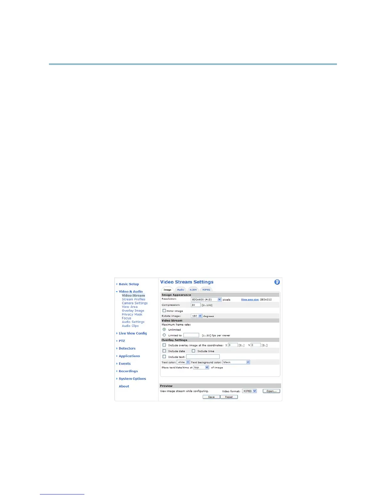 You can define the following video stream settings from Video & Audio > Video Stream: