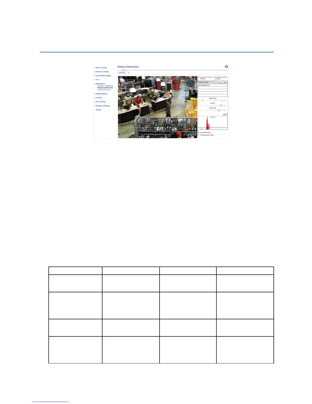 4. Adjust the Object Size, History and Sensitivity profile slide rs (s ee Motion detection pa rameters for details). Any detected