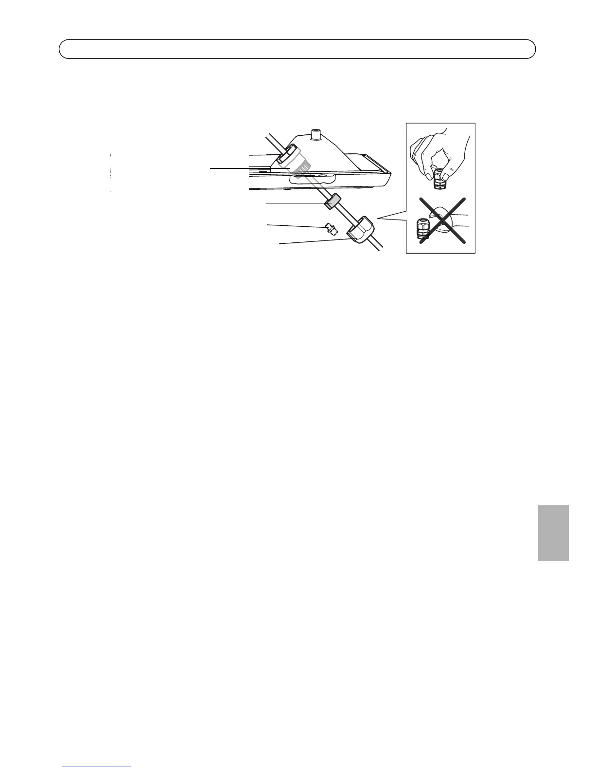 6. Presione la junta sobre el prensaestopas y atornille la tapa fuertemente.