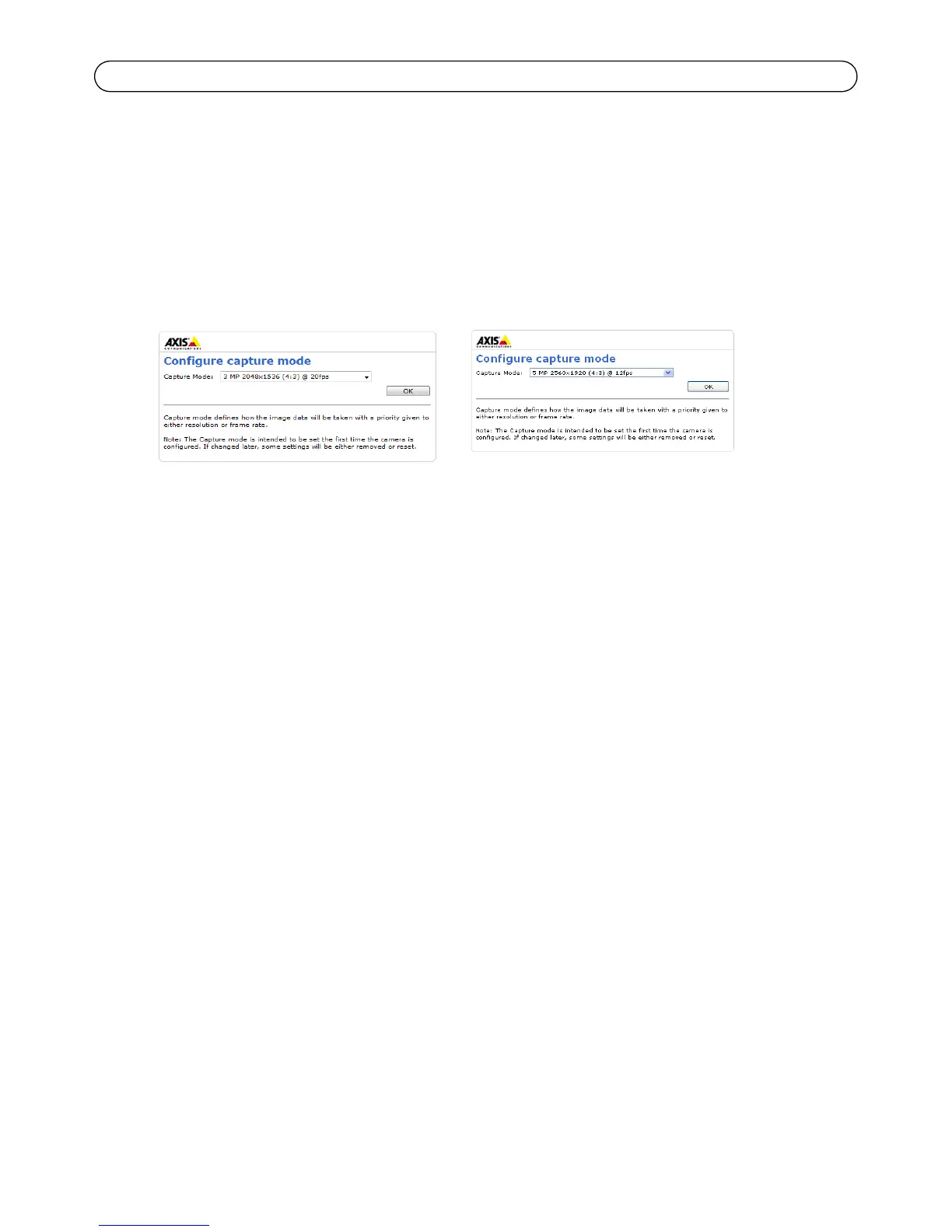 P1346-E/AXIS P1347-E. Seleccione el modo de captura adecuado en la lista desplegable y haga