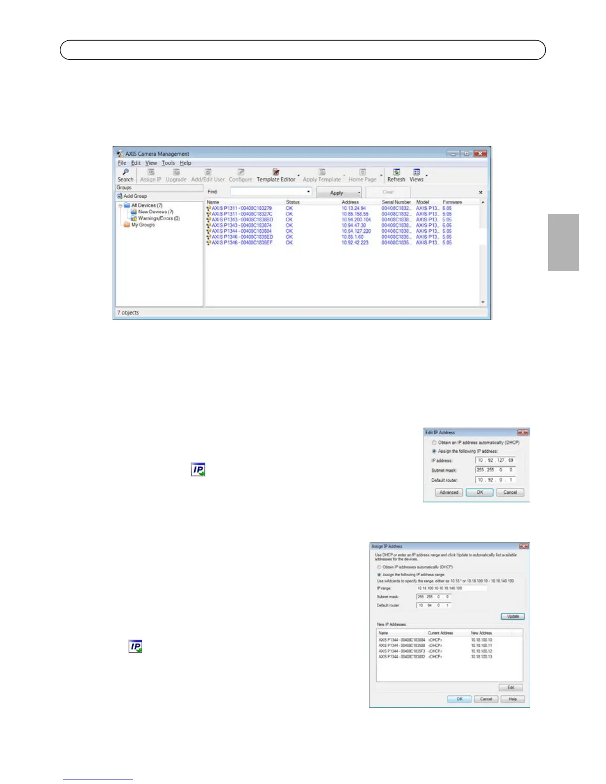 AXIS Camera Management can automatically discover multiple Axis devices, show connection