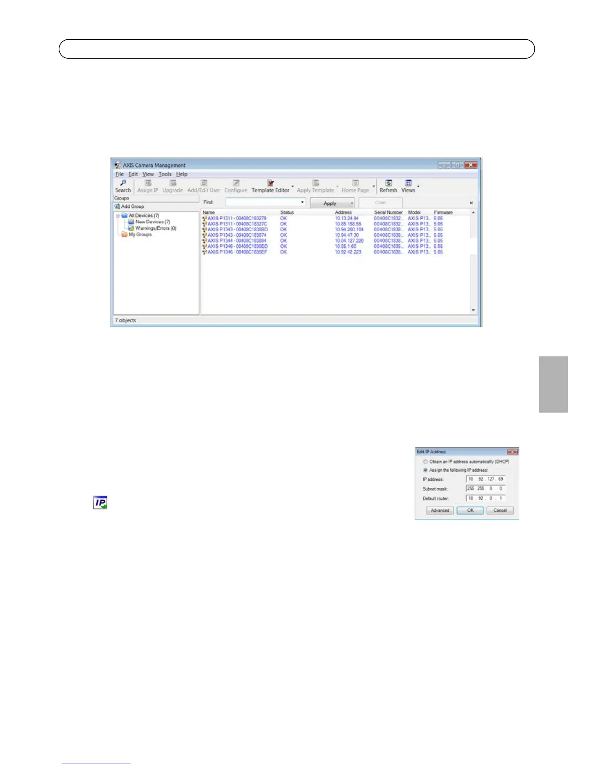 Mit AXIS Camera Management können automatisch mehrere Axis-Geräte erkannt, der