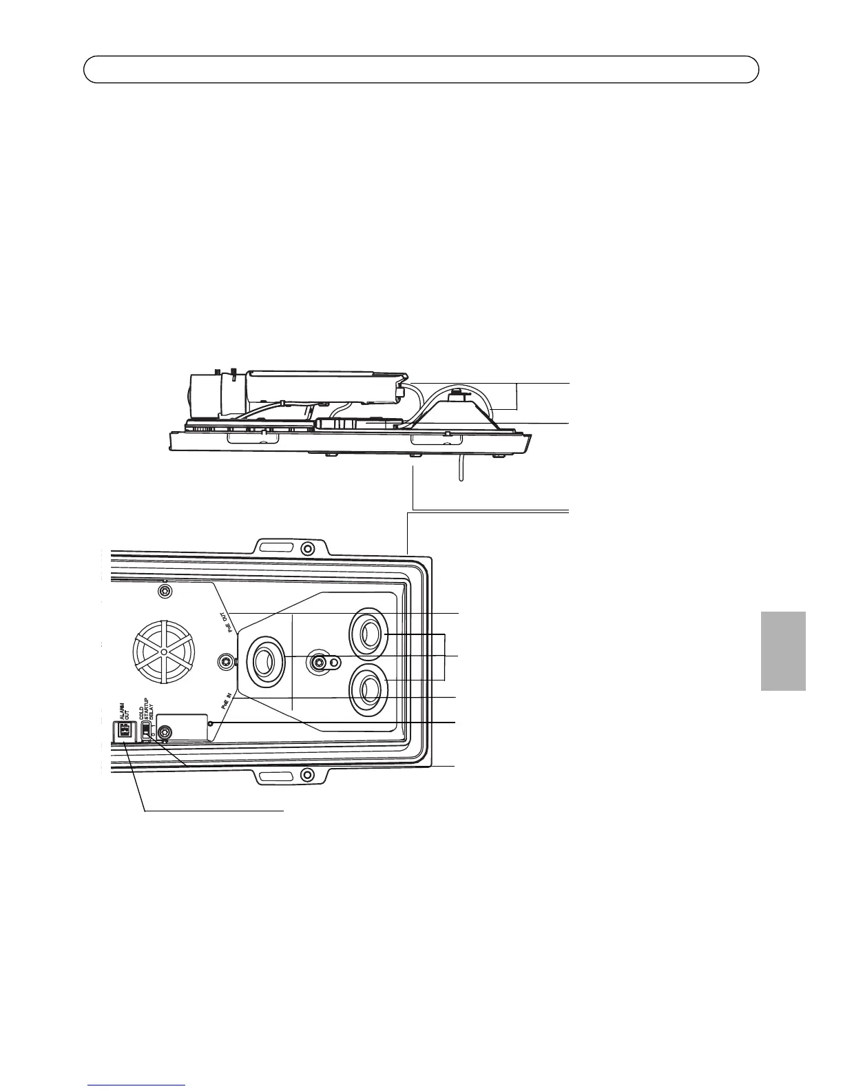 connettore di rete sul fondo. Il cavo di rete e il cavo di I/O tra il coperchio inferiore e la