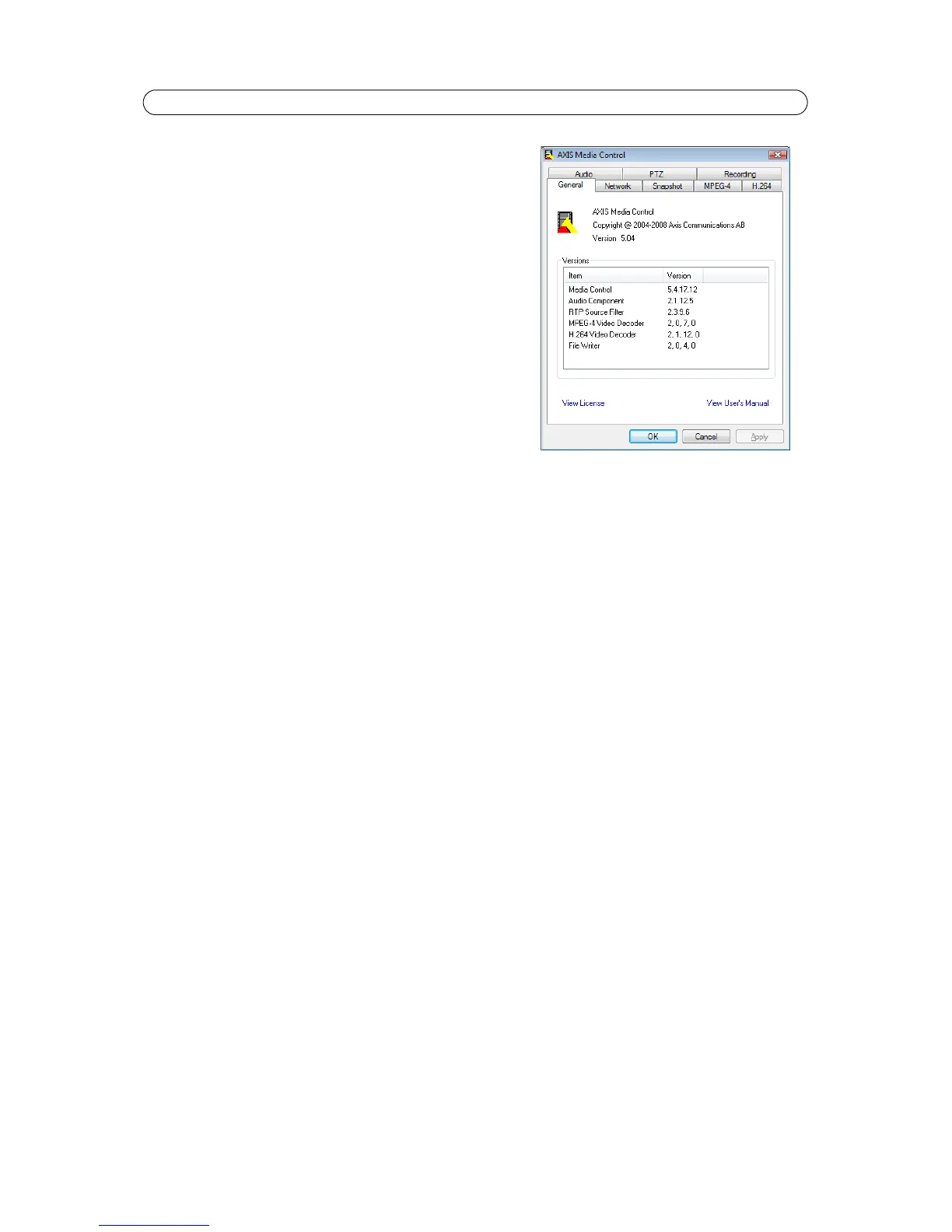 settings. Please see the AXIS Media Control User’s Manual for more