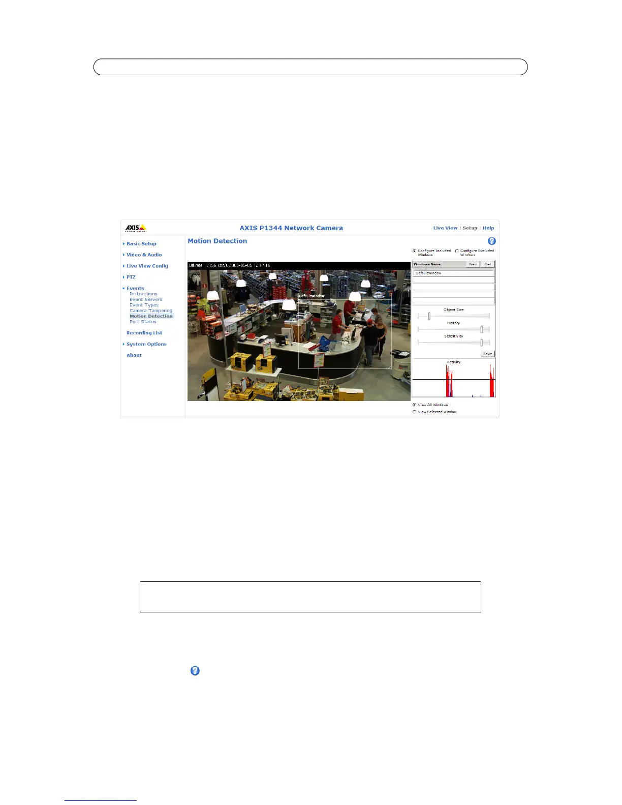 Set up a motion detection include window