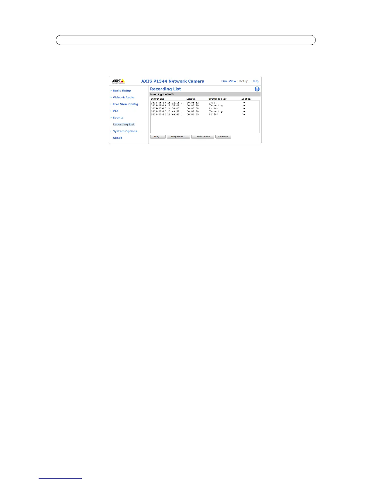 AXIS P1343/-E/AXIS P1344/-E - Recording List