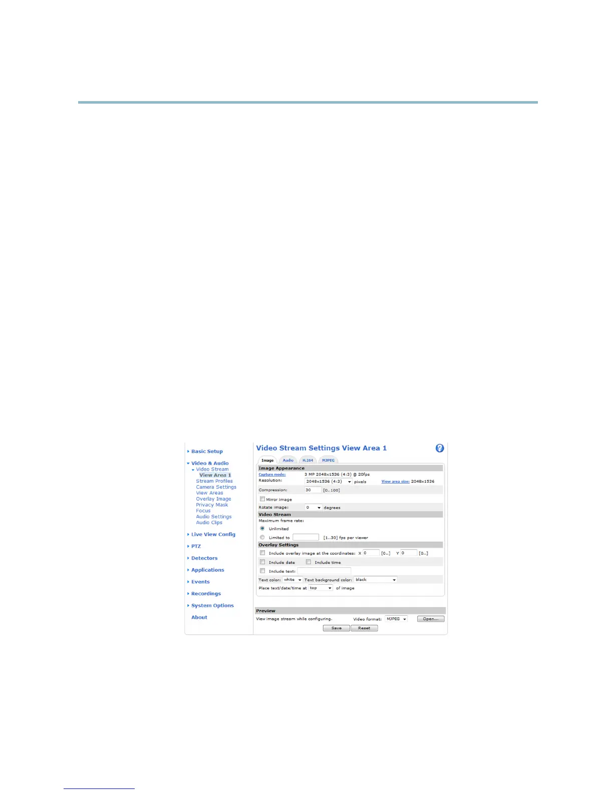 You can de fine the following video stream settings from Video & Audio > Video Stream: