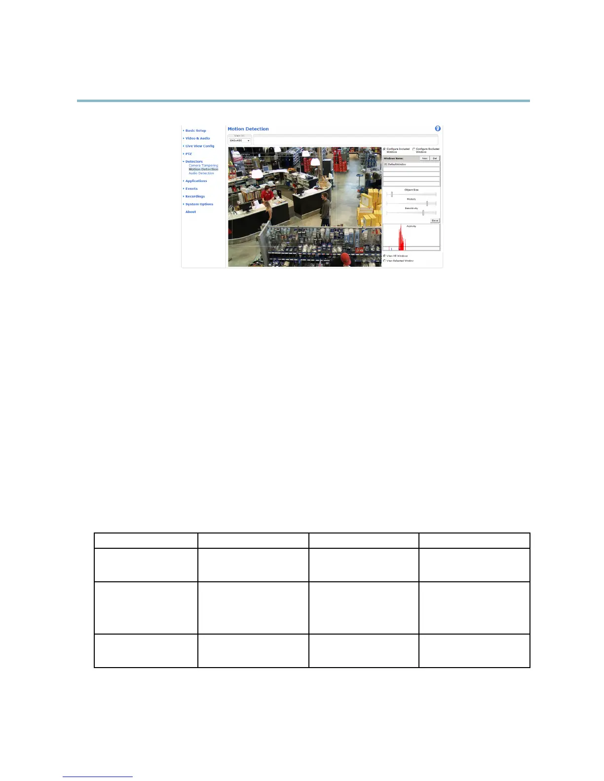 5. Adjust the Object Size, History and Sensitivity profile sliders (see Motion detection parameters for details). Any detected