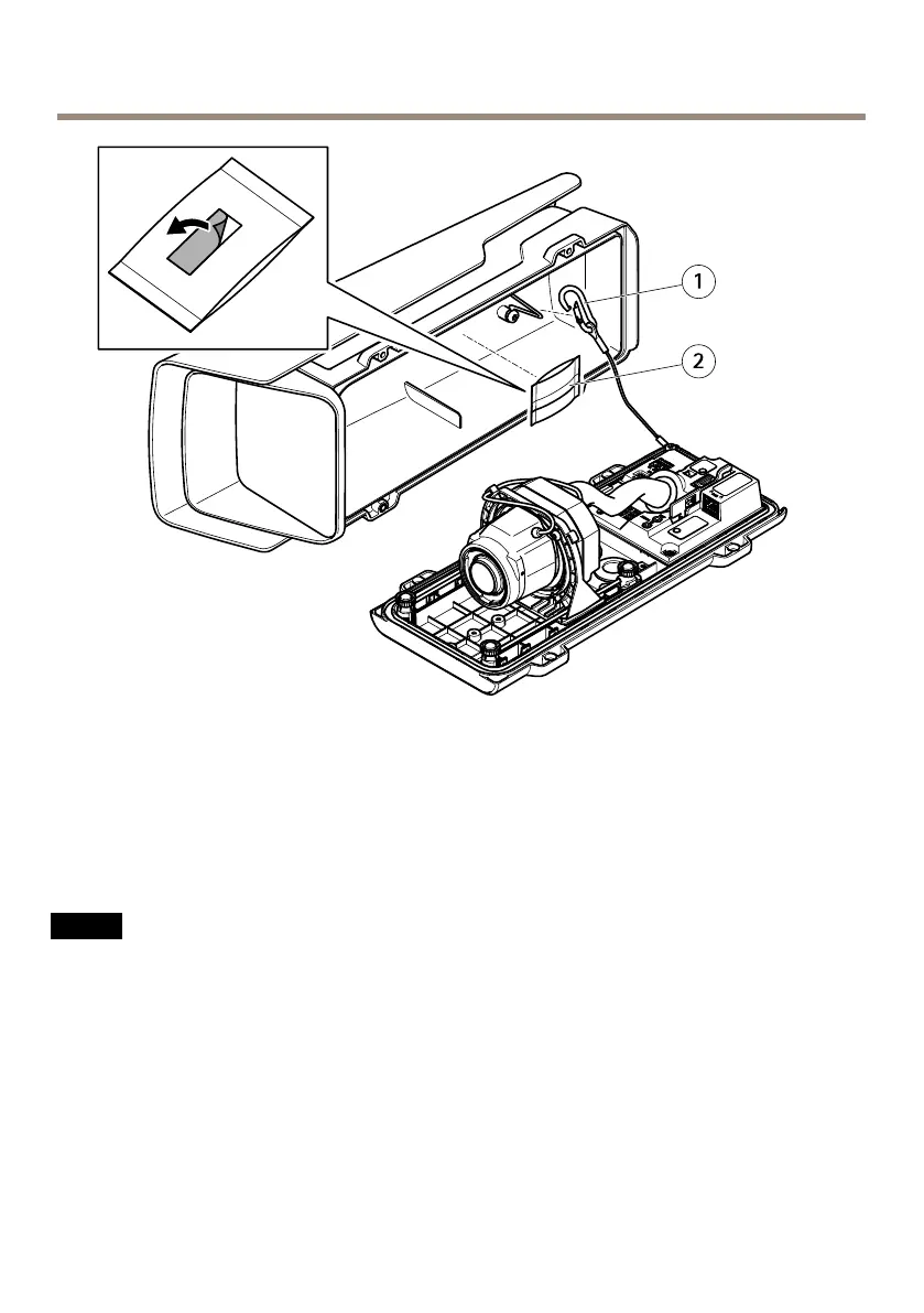 15. Remove the protective strip from the adhesive and attach the desiccant bag to the