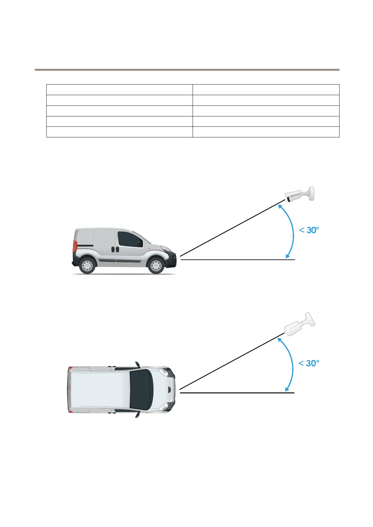 •Thecamera’smountingangleshouldnotbelargerthan30°inanydirection.