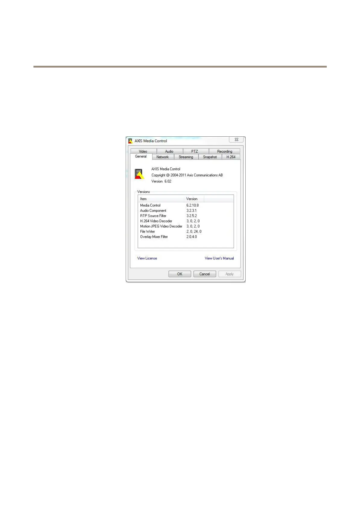 TheAMCControlPanelcanbeusedtocongurevariousvideosettings.PleaseseetheAXISMediaControlUser’sManualformore