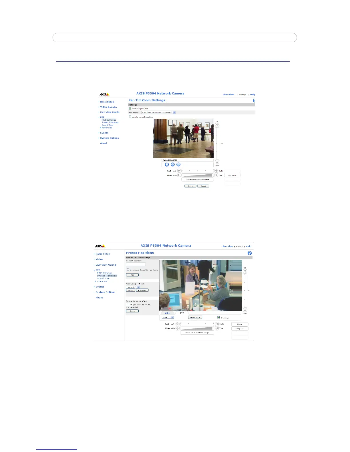 The Pan Tilt Zoom feature only applies to the AXIS P3304/AXIS P3304-V Network Camera.