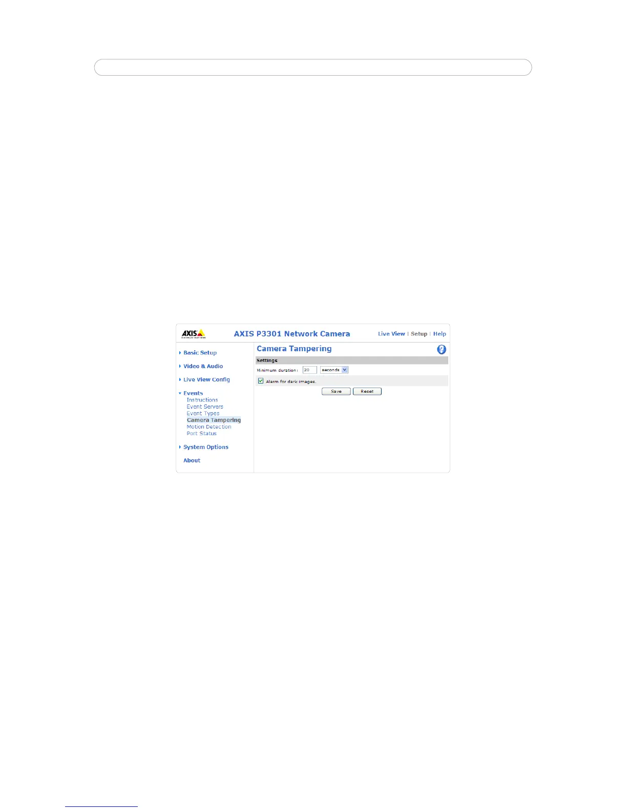 The Minimum duration parameter sets the minimum tampering period, that is, an alarm will not be triggered until this period