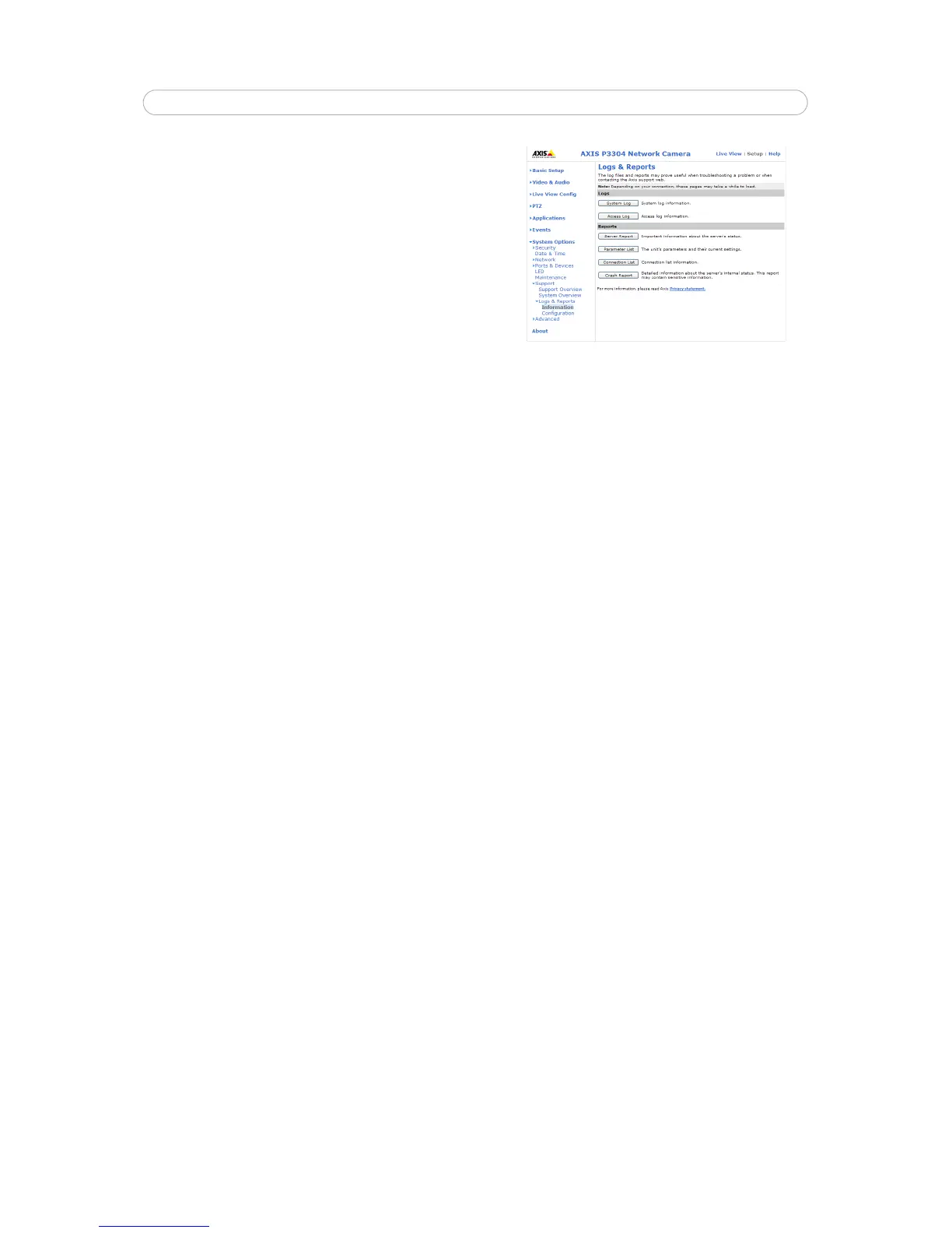 all connections to the camera, whether successful or not. Go to Support > Logs & Reports > Configuration and