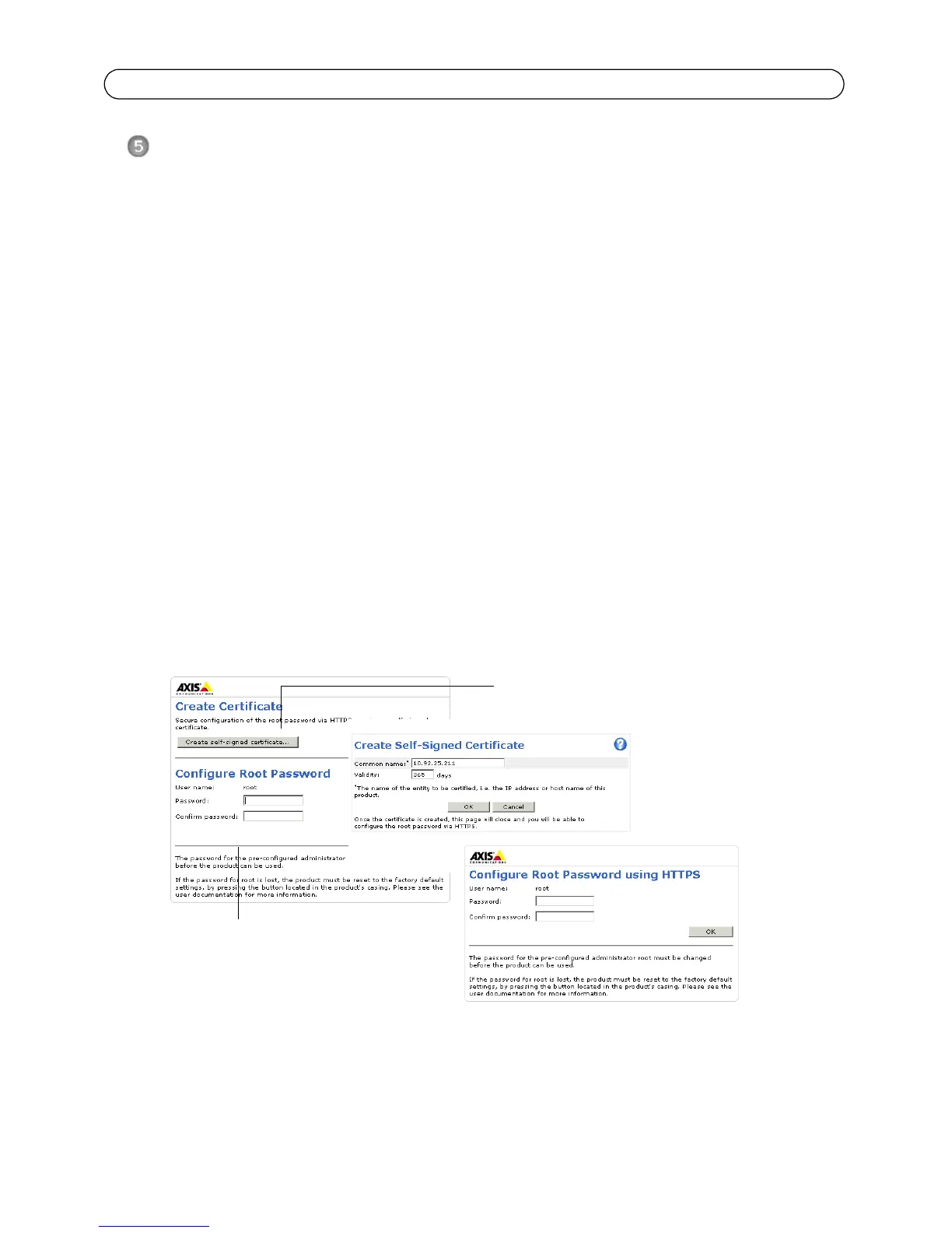 Password (Root-Kennwort konfigurieren), das beim erstmaligen Zugriff auf die AXIS