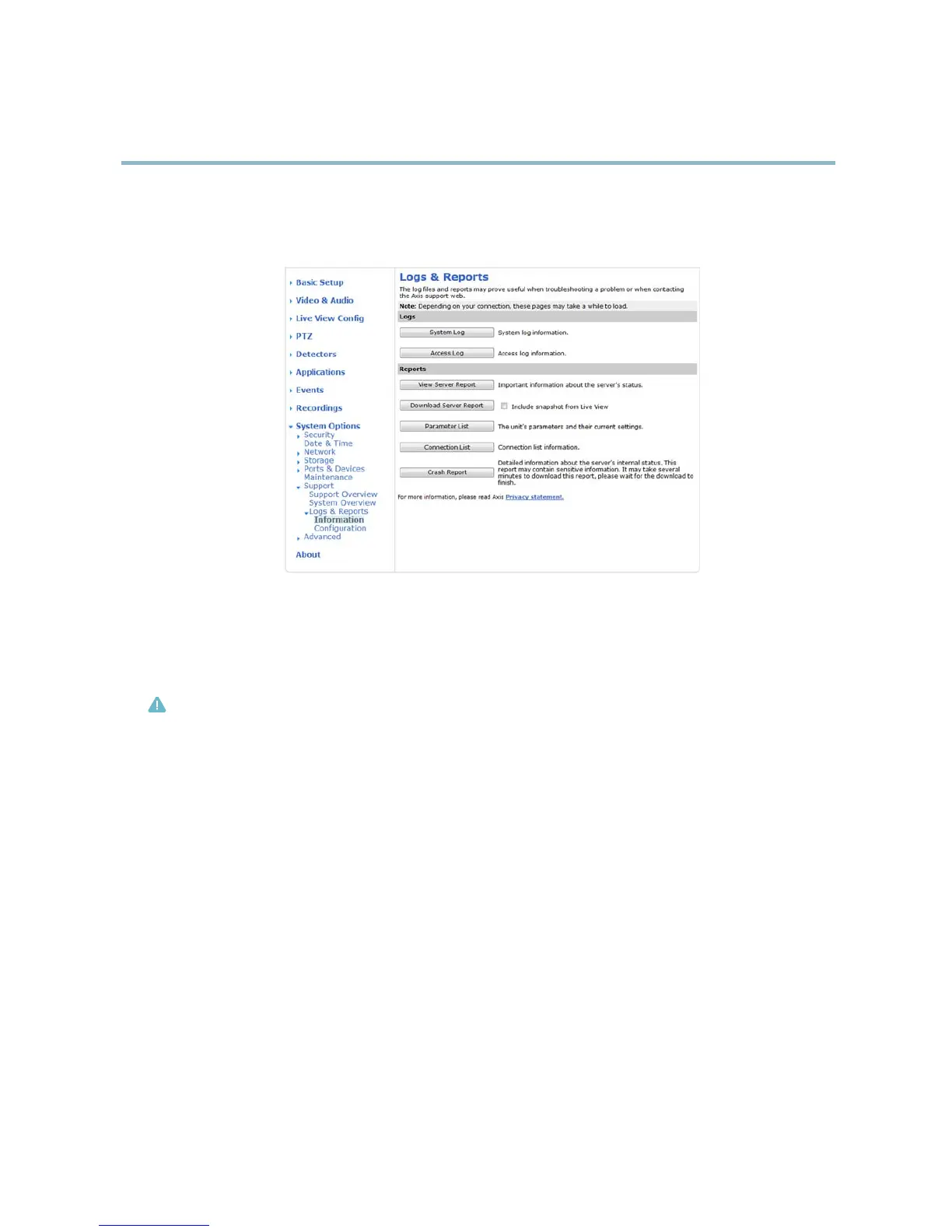 The Access Log can be configured to list all connections to the product (select C ritica l, Warnings & Info). If required, a differ ent log