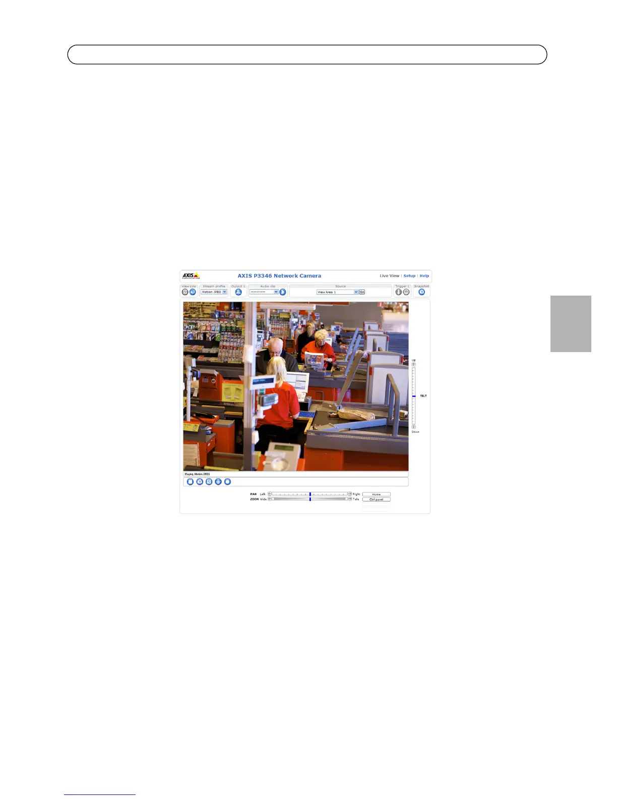 La page Live View (Vue en direct) de la caméra réseau s’affiche. Le lien Setup (Configuration) vous