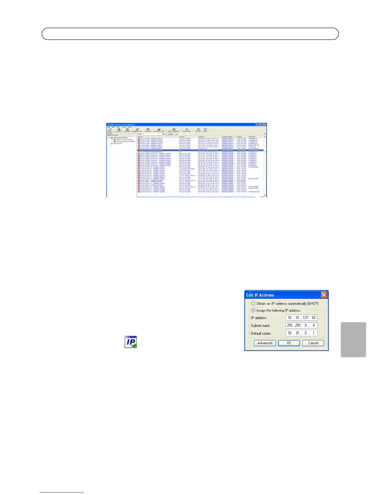 AXIS Camera Management puede detectar automáticamente varios dispositivos Axis, mostrar el