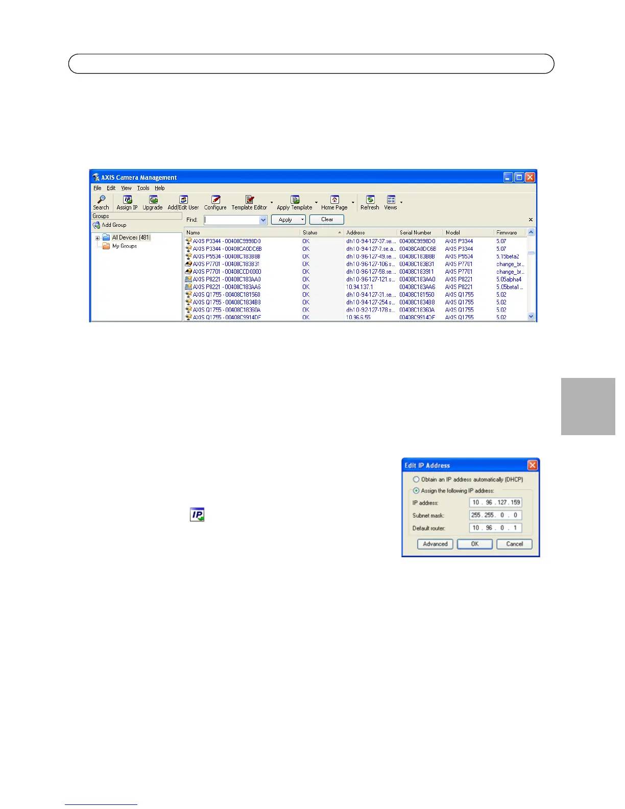 Mit AXIS Camera Management können automatisch mehrere Axis-Geräte erkannt, der
