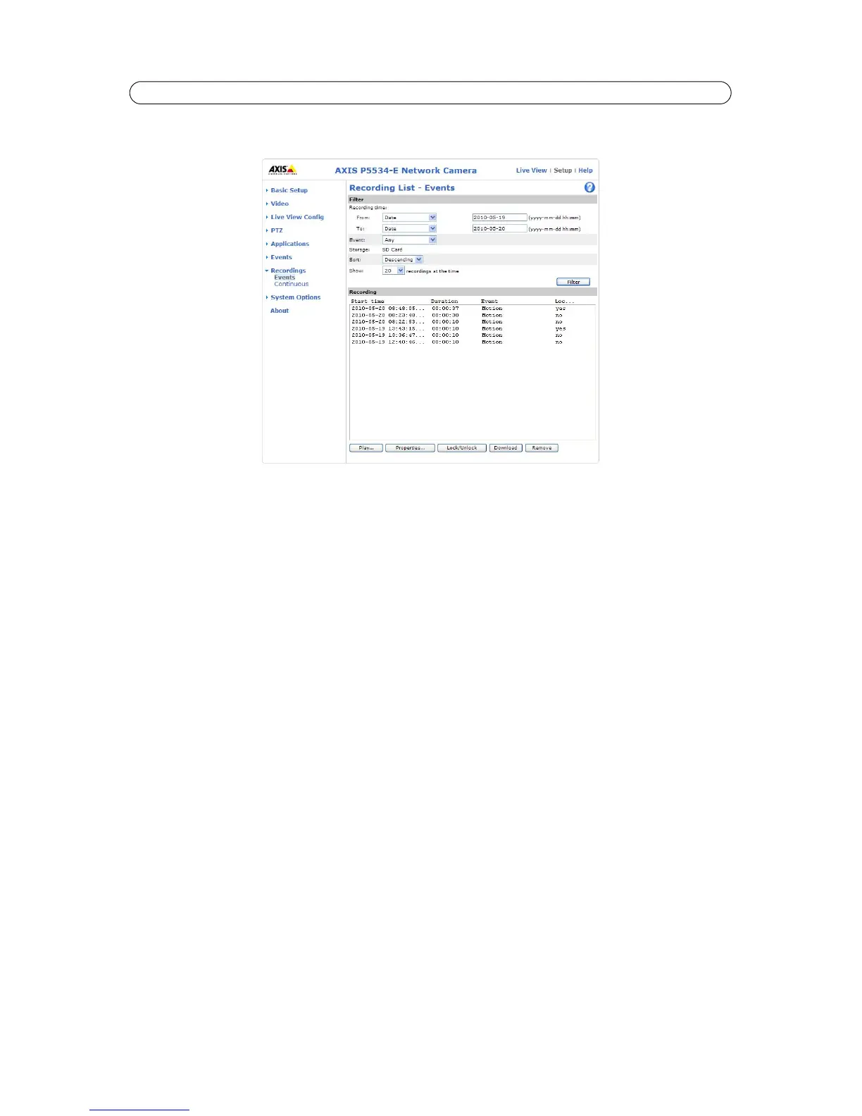 AXIS P5532-E/P5534-E - Recording List