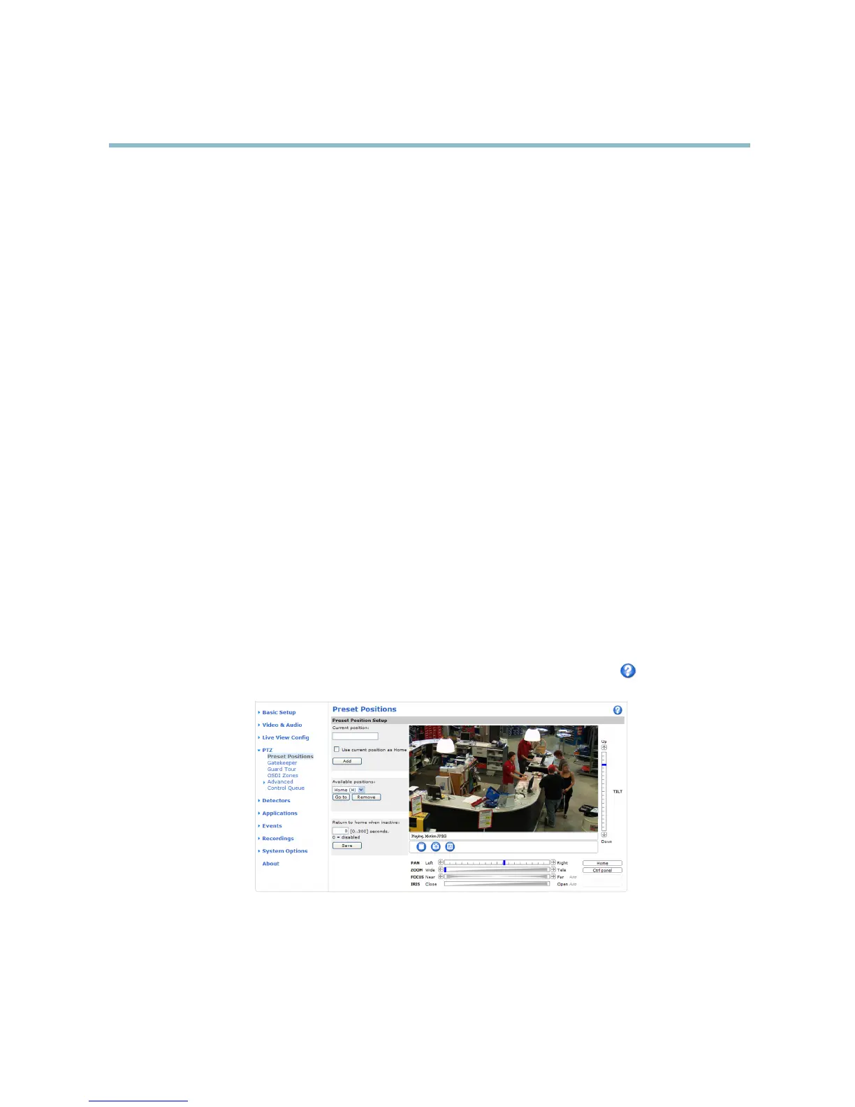 The Hom e position is readily accessible by clicking the Home buttonontheLiveViewpageandinthePresetP