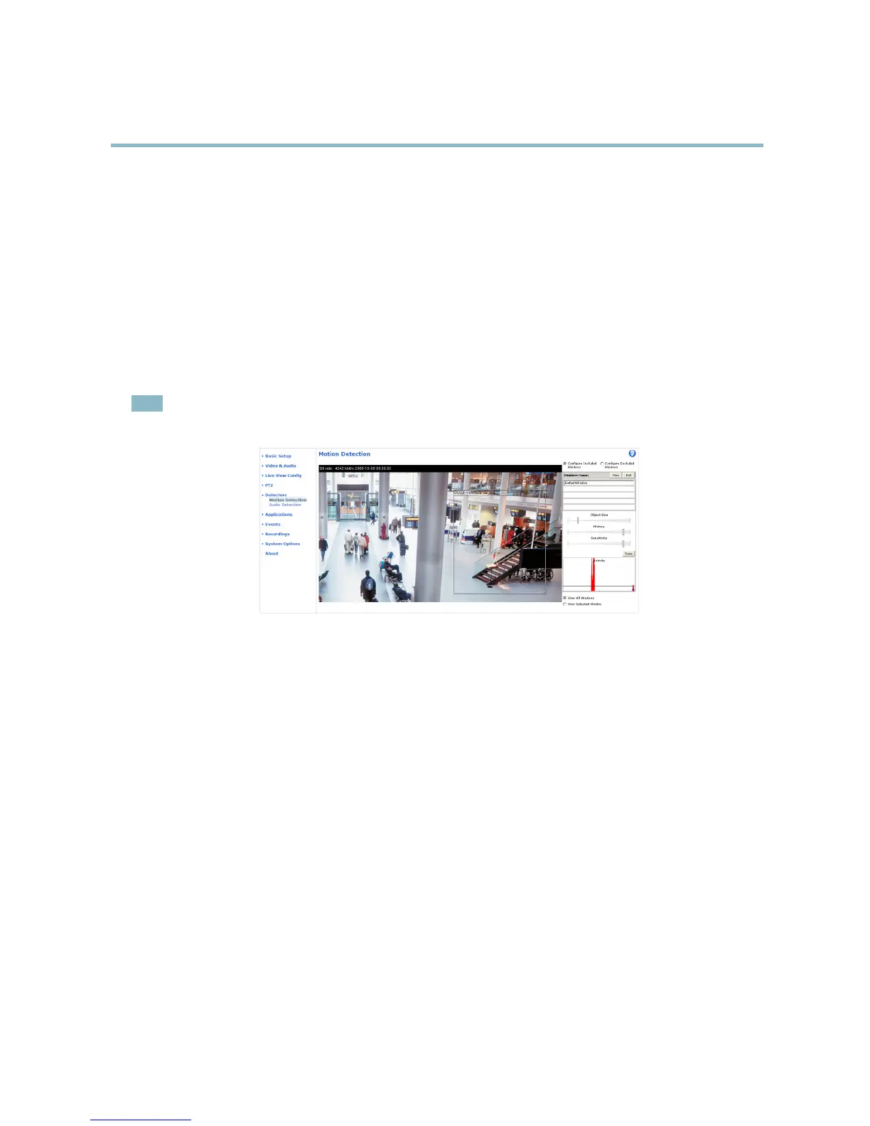 4. Adjust the Object Size, History and Sensitivity profile sliders (s ee Motion detection parameters for deta ils). Any detected