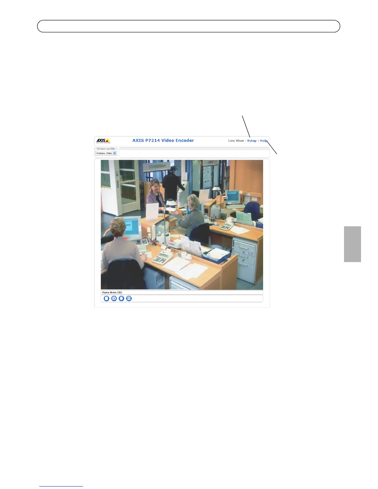 7. Die Seite Live View (Live-Ansicht) des AXIS P7214/P7210 wird angezeigt. Über den Link Setup