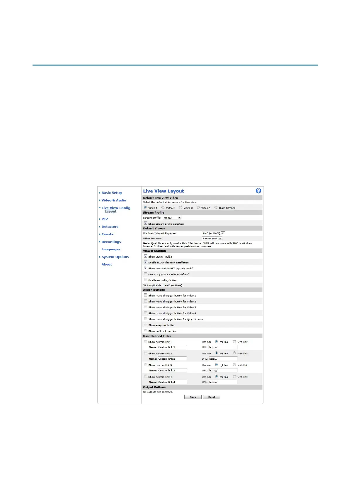 • Action Buttons. These are the buttons described in Controls on the Live View Page, on page 10.