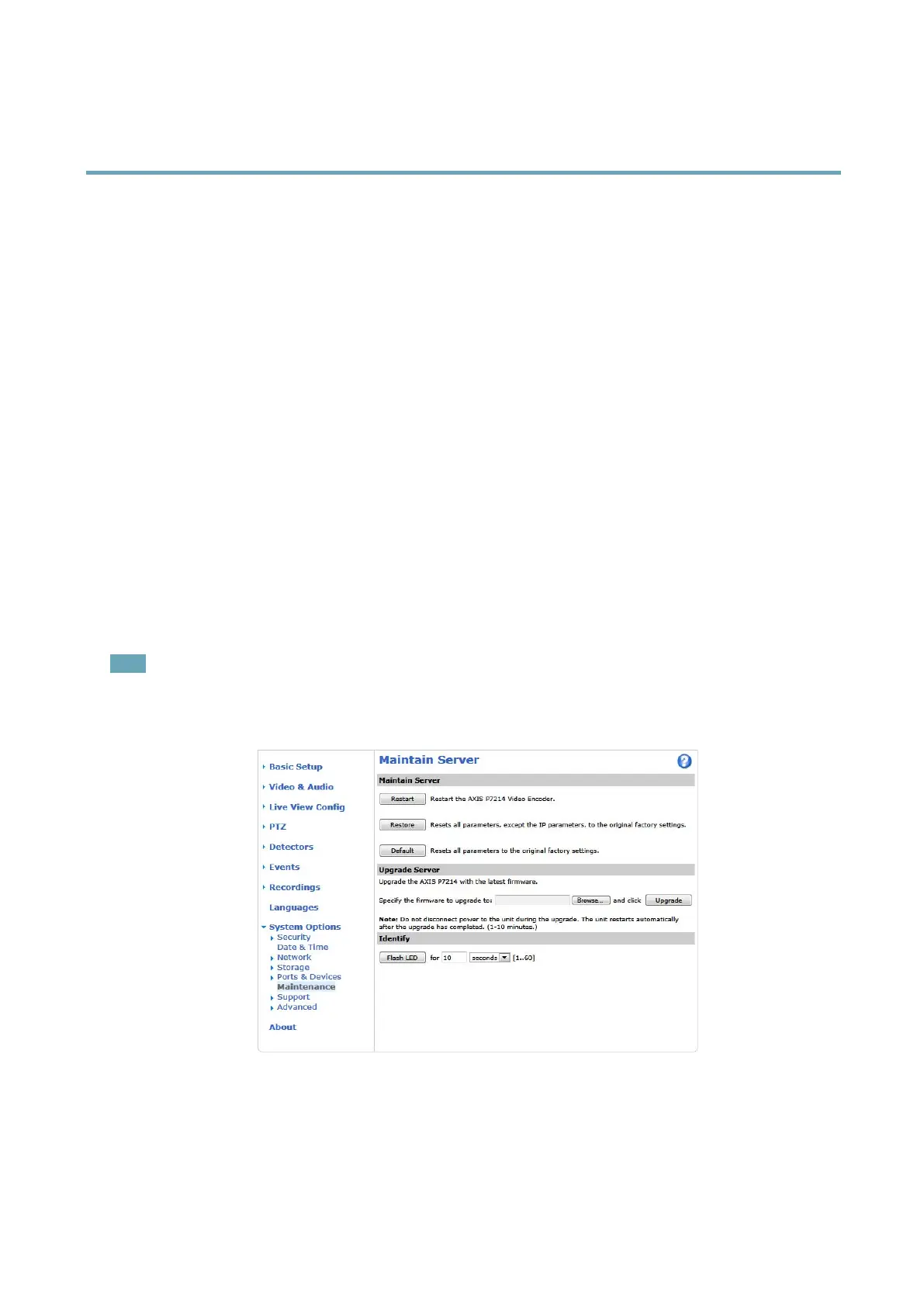 2. Go to Setup > System Options > Maintenance in the product’s web pages.