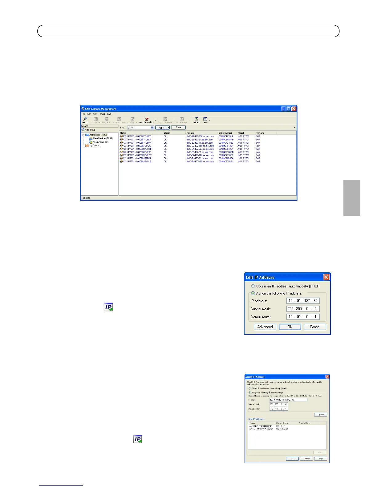 AXIS Camera Management peut détecter automatiquement plusieurs périphériques Axis, afficher