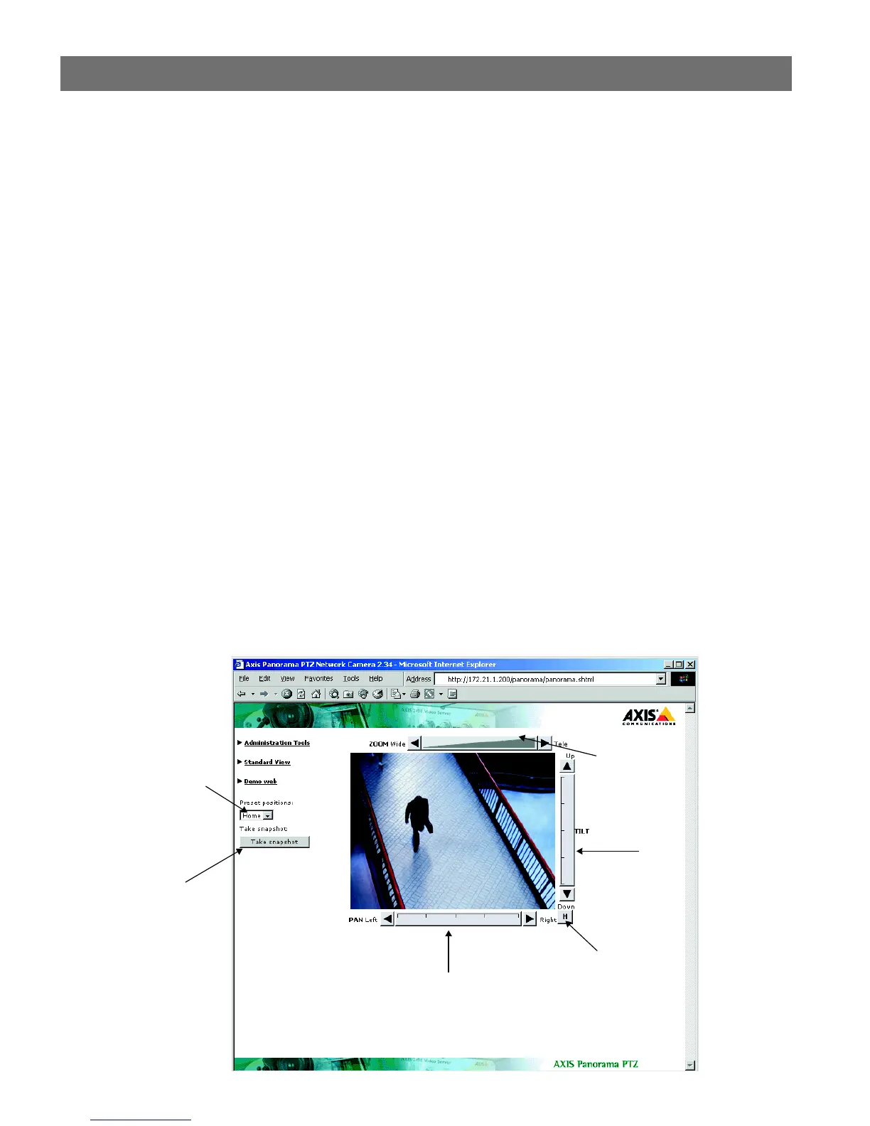 The most common way of changing the Panorama view is to use the Pan, Tilt and Zoom