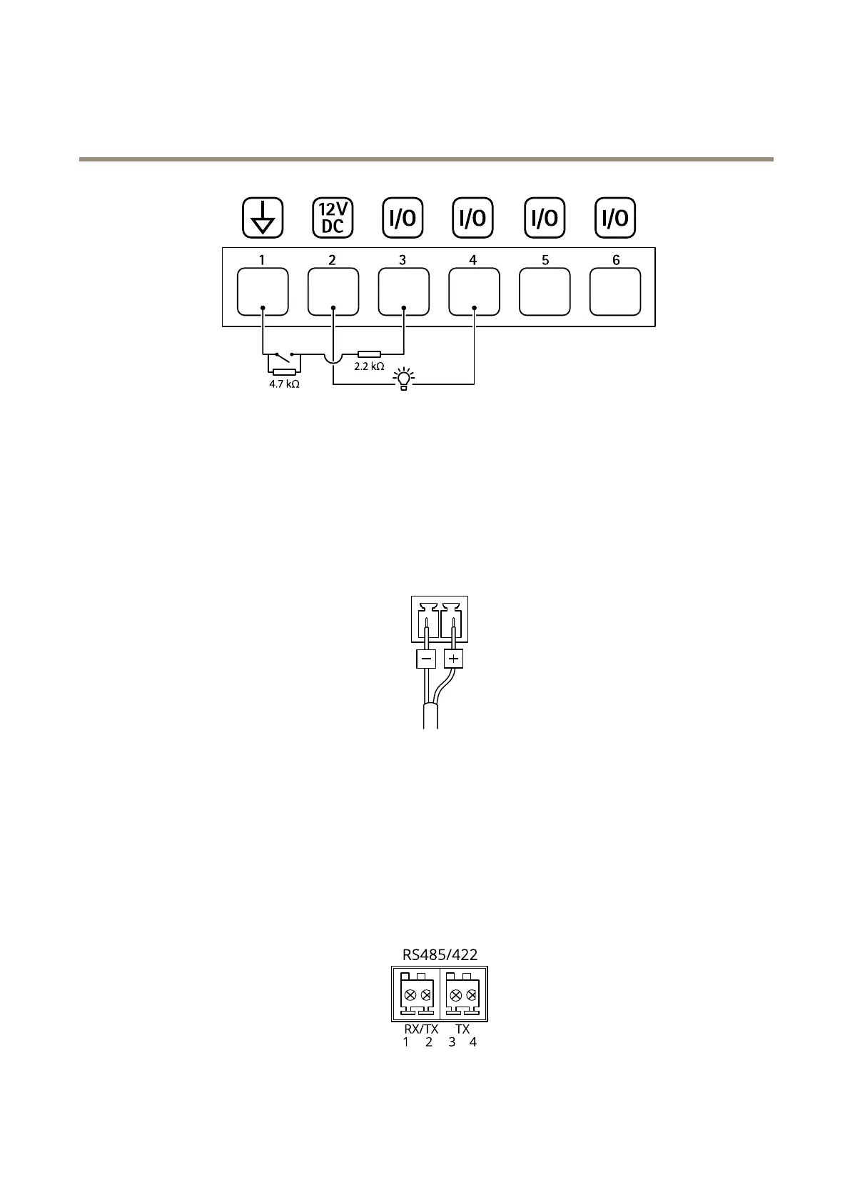 Two2-pinterminalblocksforRS485/RS422serialinterfaceusedtocontrolauxiliaryequipmentsuchaspan-tiltdevices.