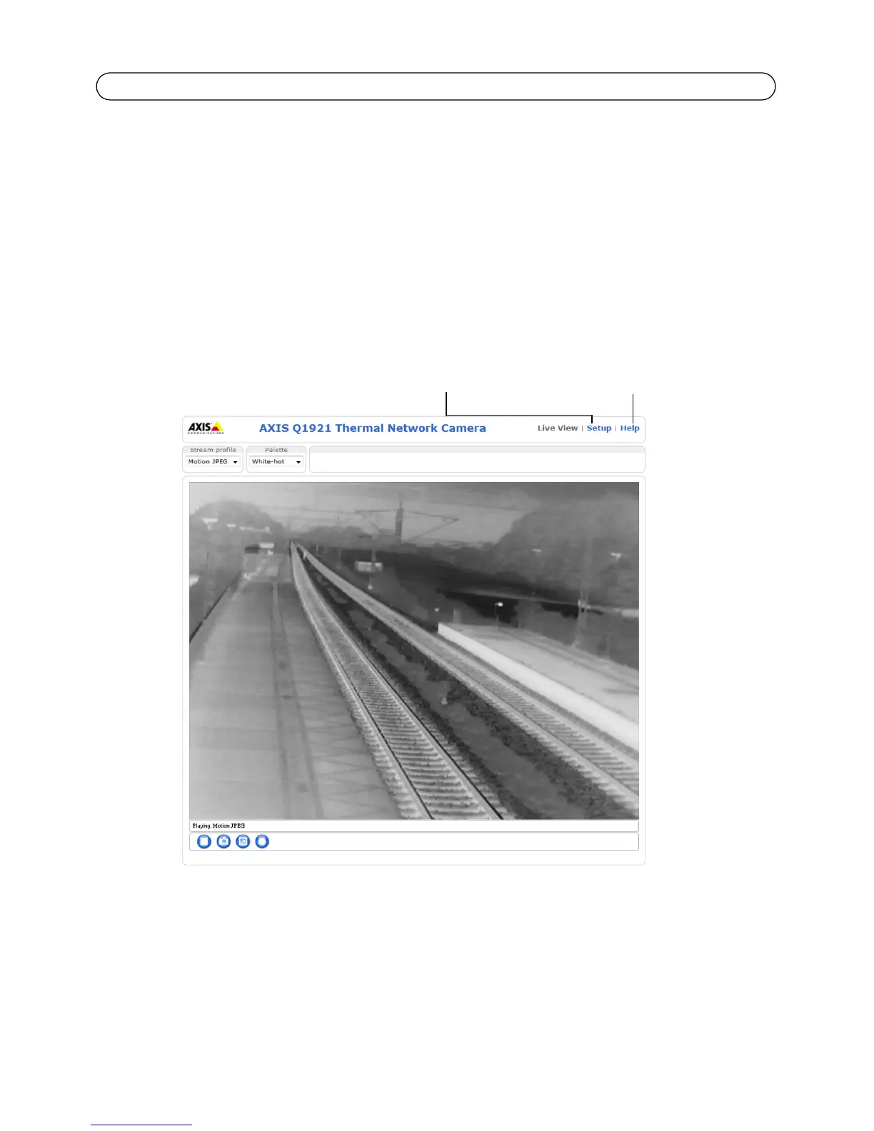 The Live View page of the network camera is displayed, with links to the Setup tools, which allow