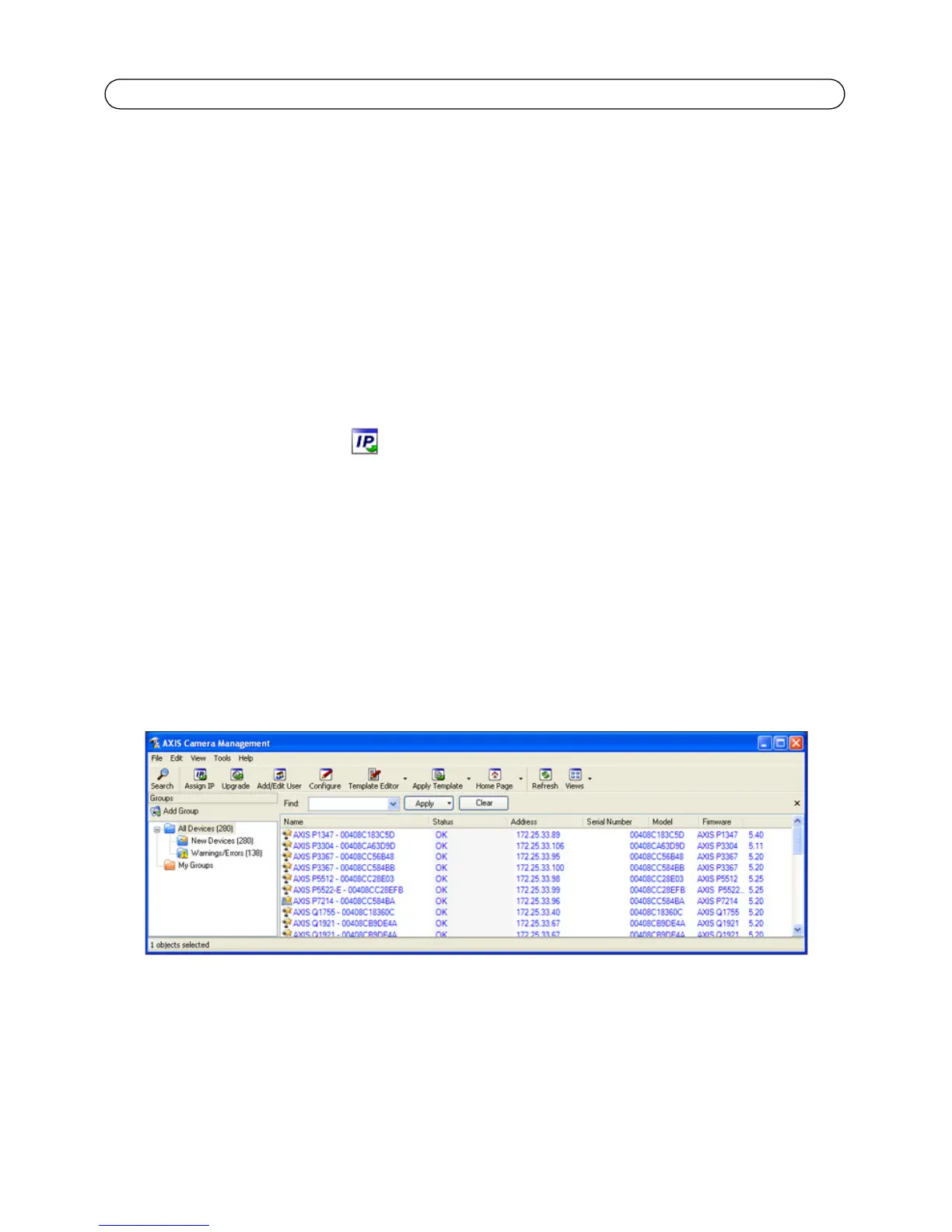 AXIS Camera Management puede detectar automáticamente varios dispositivos Axis, mostrar el