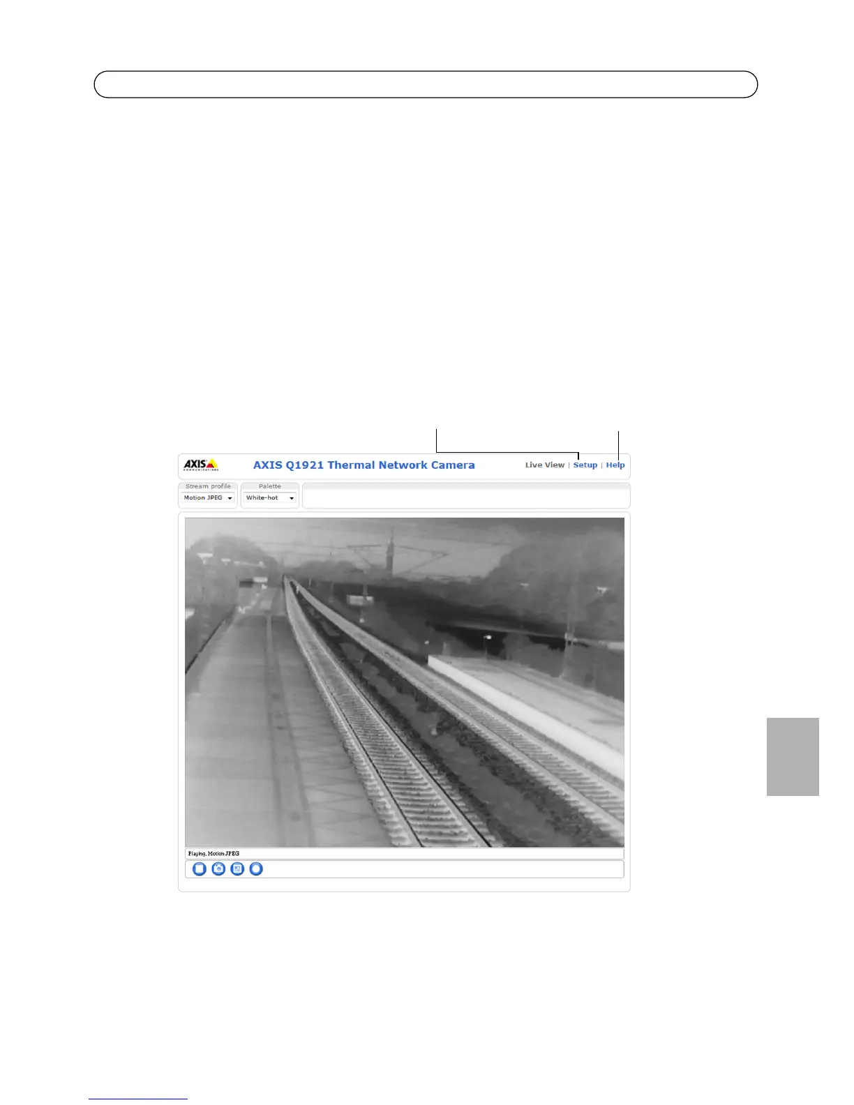 La página Live View (Visualización en directo) de la cámara de red aparece con enlaces a las